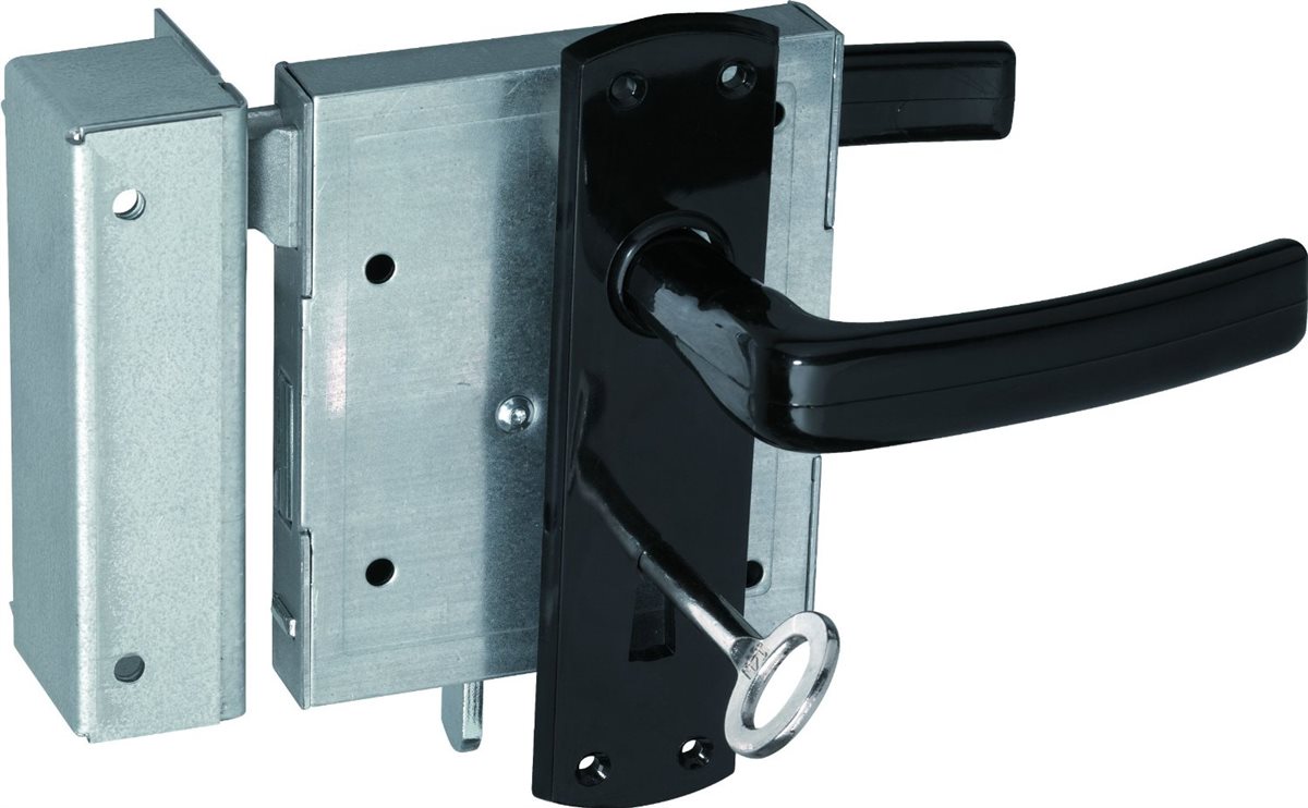 - Aufschraubschloss im praktischen Set mit Drückerpaar und Außenschild