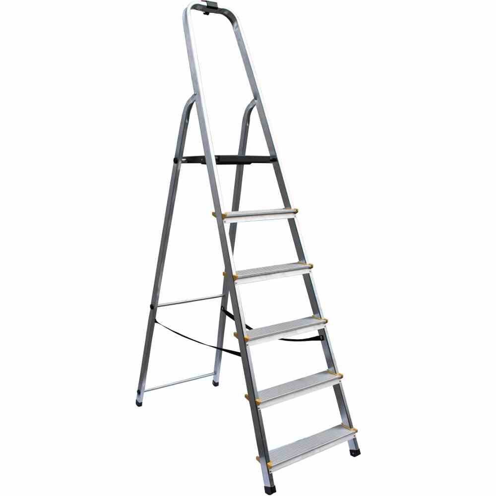 Mobile Preview: ALPFA Haushaltsleiter 6 Stufen Alu Aluminium Leiter Treppe 3,02m Arbeitshöhe