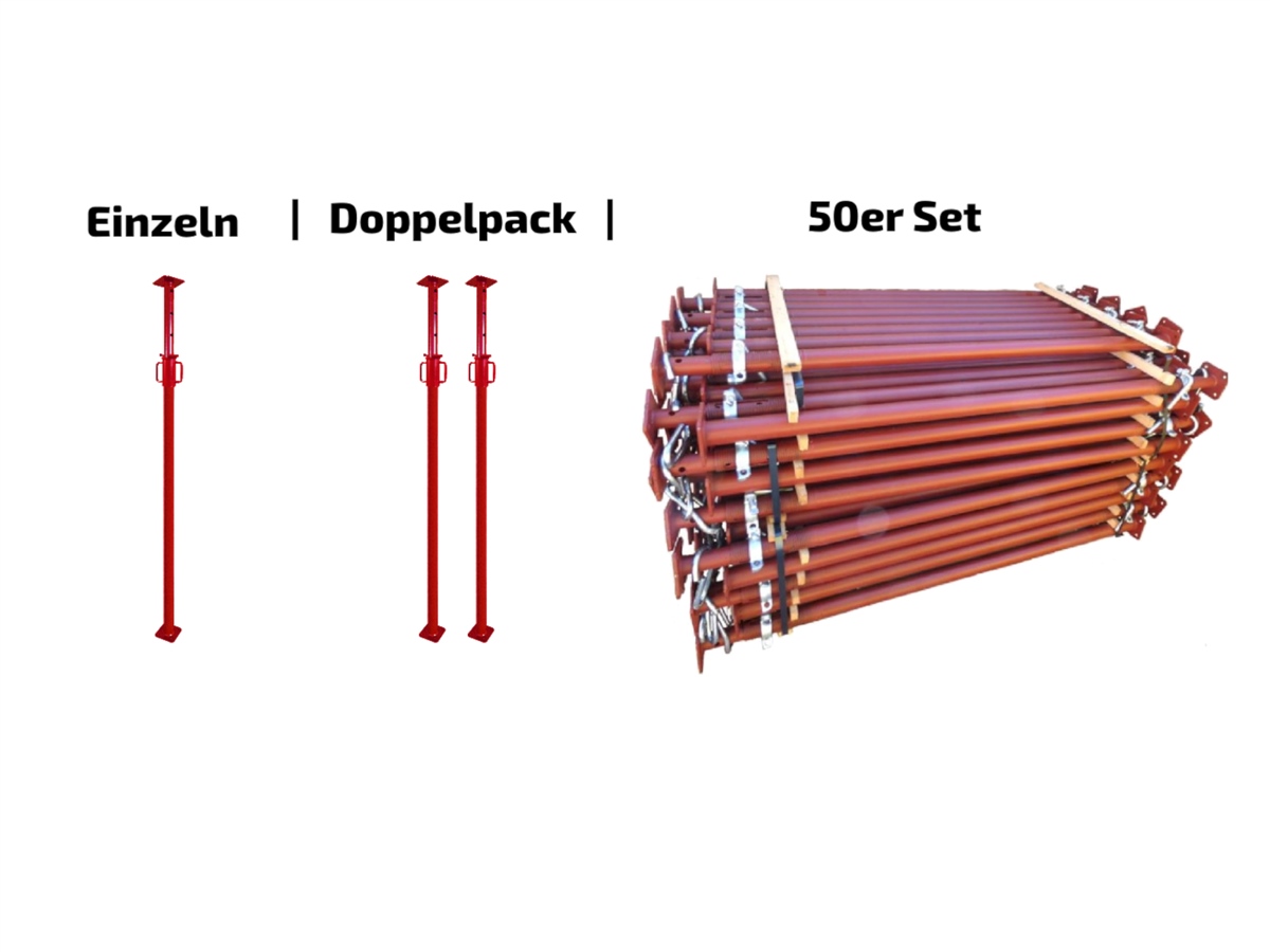 Dank der alle 100 mm im Innenrohr angebrachten Bohrungen kann ihre Auszugslänge zwischen 50 bis 80 cm verstellt werden. Sie sind mit dem Großteil des Zubehörs anderer Schalungen, Decken- und Bodenplatten kompatibel.