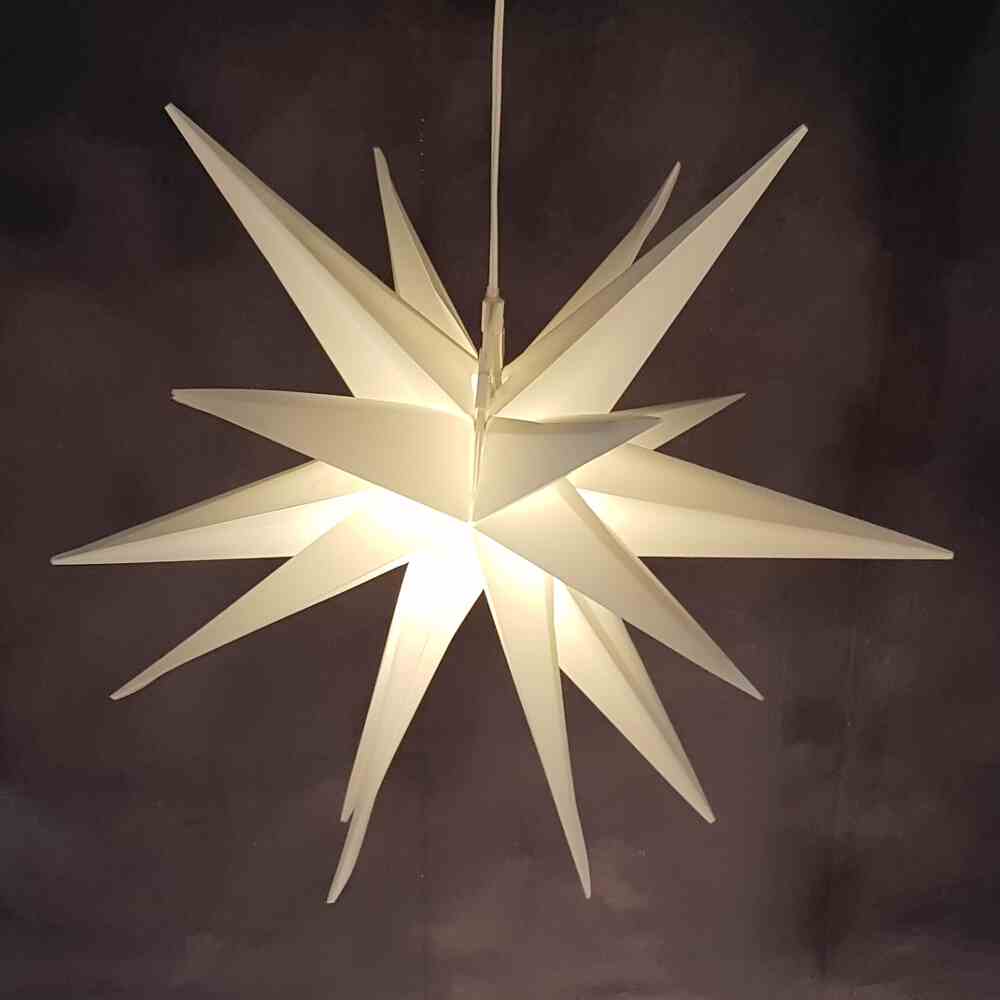 - ein Stern aus Kunststoff der aufgeklappt und über dem Leuchtmittel verriegelt wird
