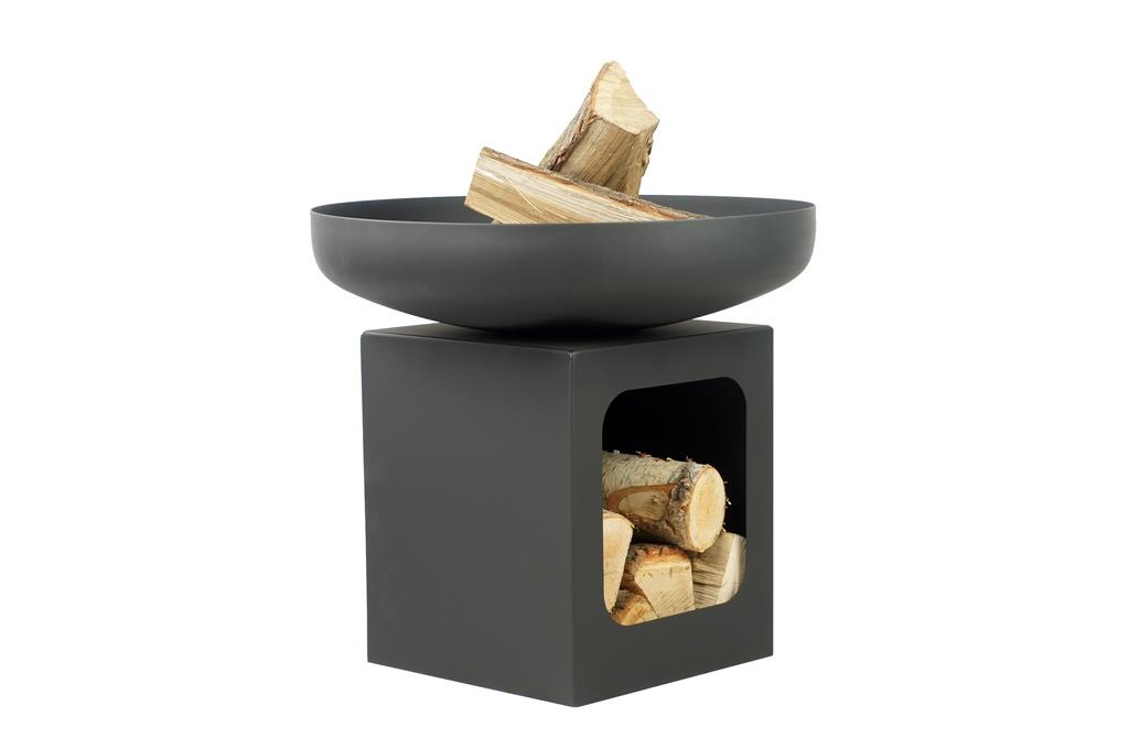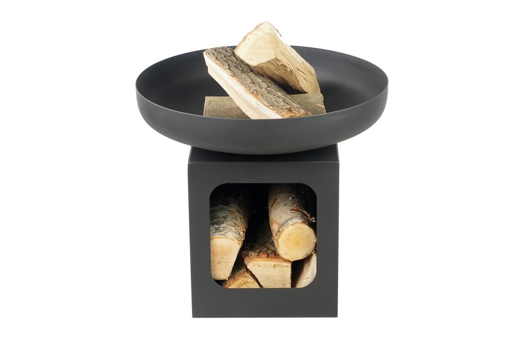 Die Feuerschale ist sehr praktisch, da es eine Feuerschale mit Holzlager ist.