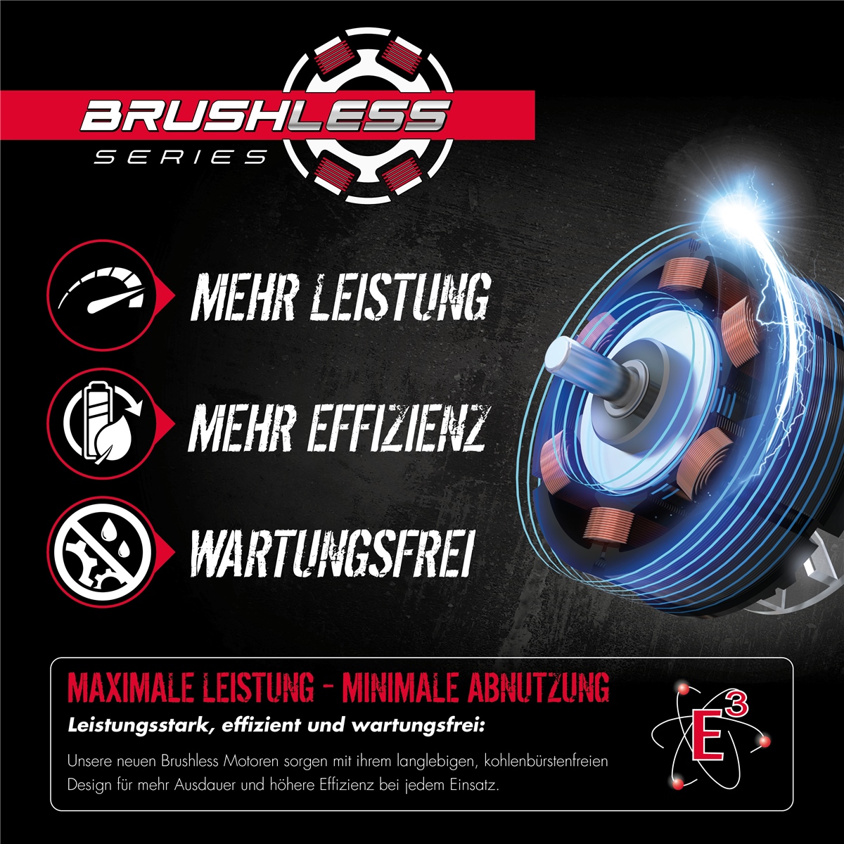 - Brushless Motor für mehr Leistung und längere Laufzeit