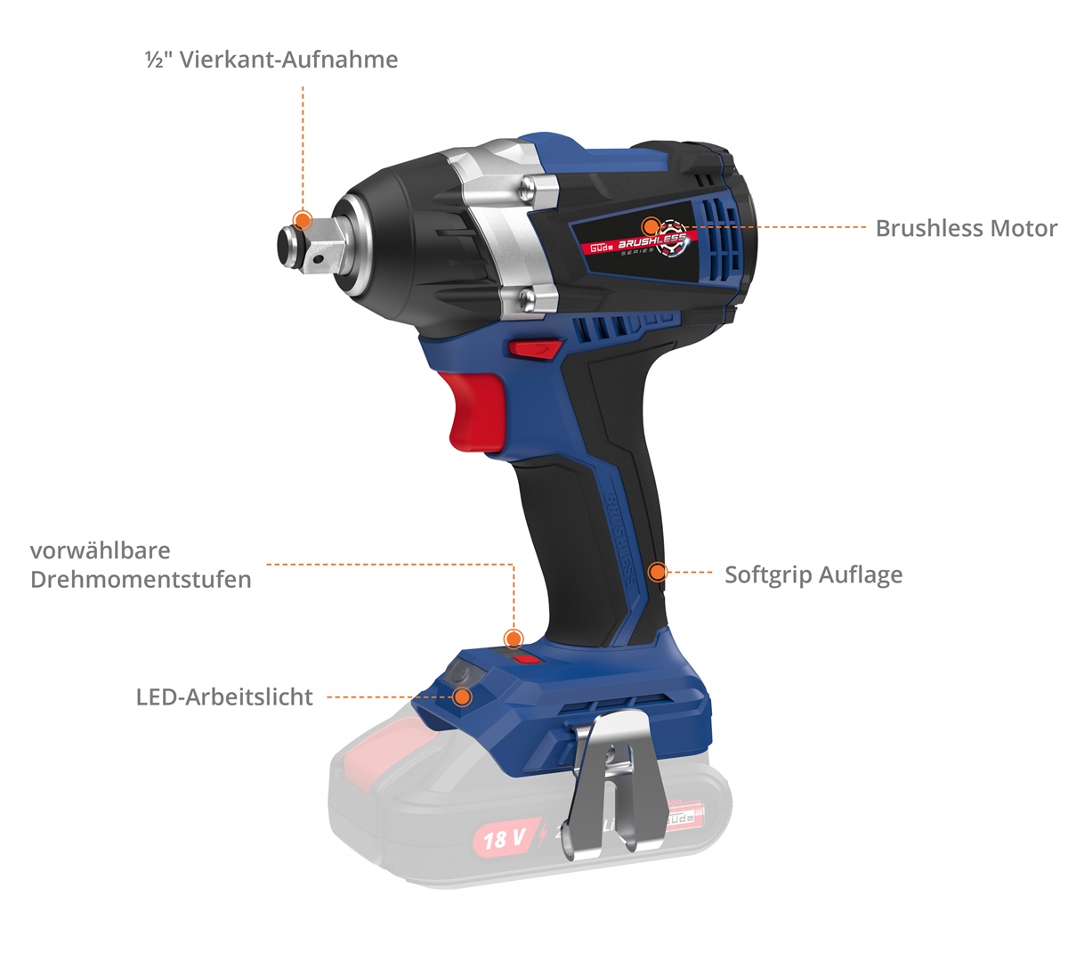 GÜDE Akku Schlagschrauber Schrauber Akkuschrauber BSS 18 1/2-0 BL ohne Akku