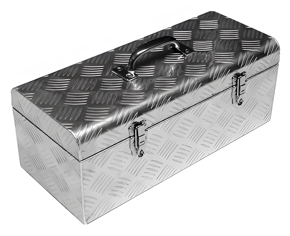 Vielseitig einsetzbare Vollmetallbox aus Aluminium-Riffelblech (Tränenblech) für die sichere Aufbewahrung und den Transport deines Werkzeuges. Egal ob bei dir zu Hause, in der Werkstatt, auf der Baustelle, im PKW oder auf dem Pickup.