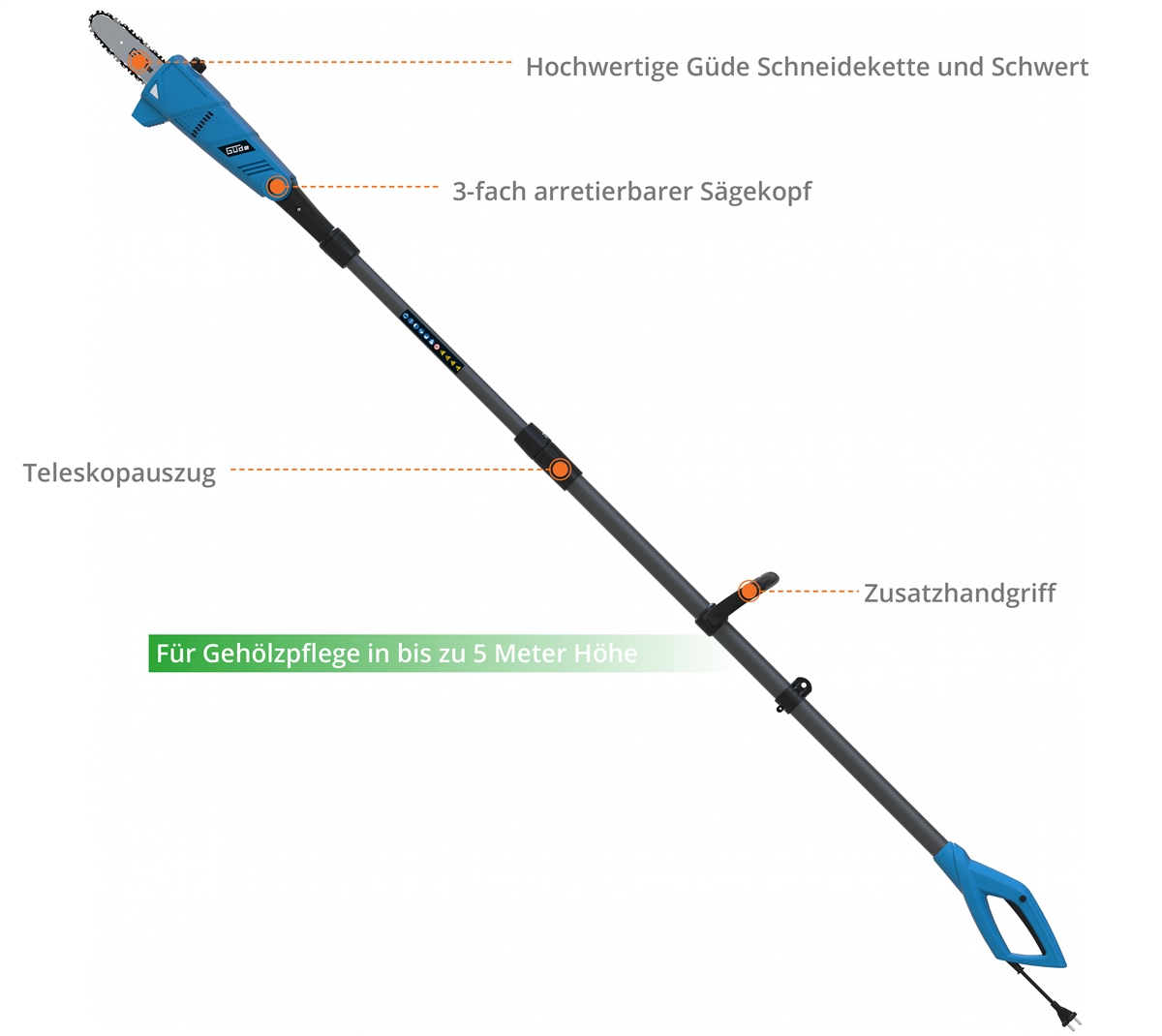 - Einsatzgebiete: Für Gehölzpflege bis in ca. 5 m Höhe je nach Körpergröße
