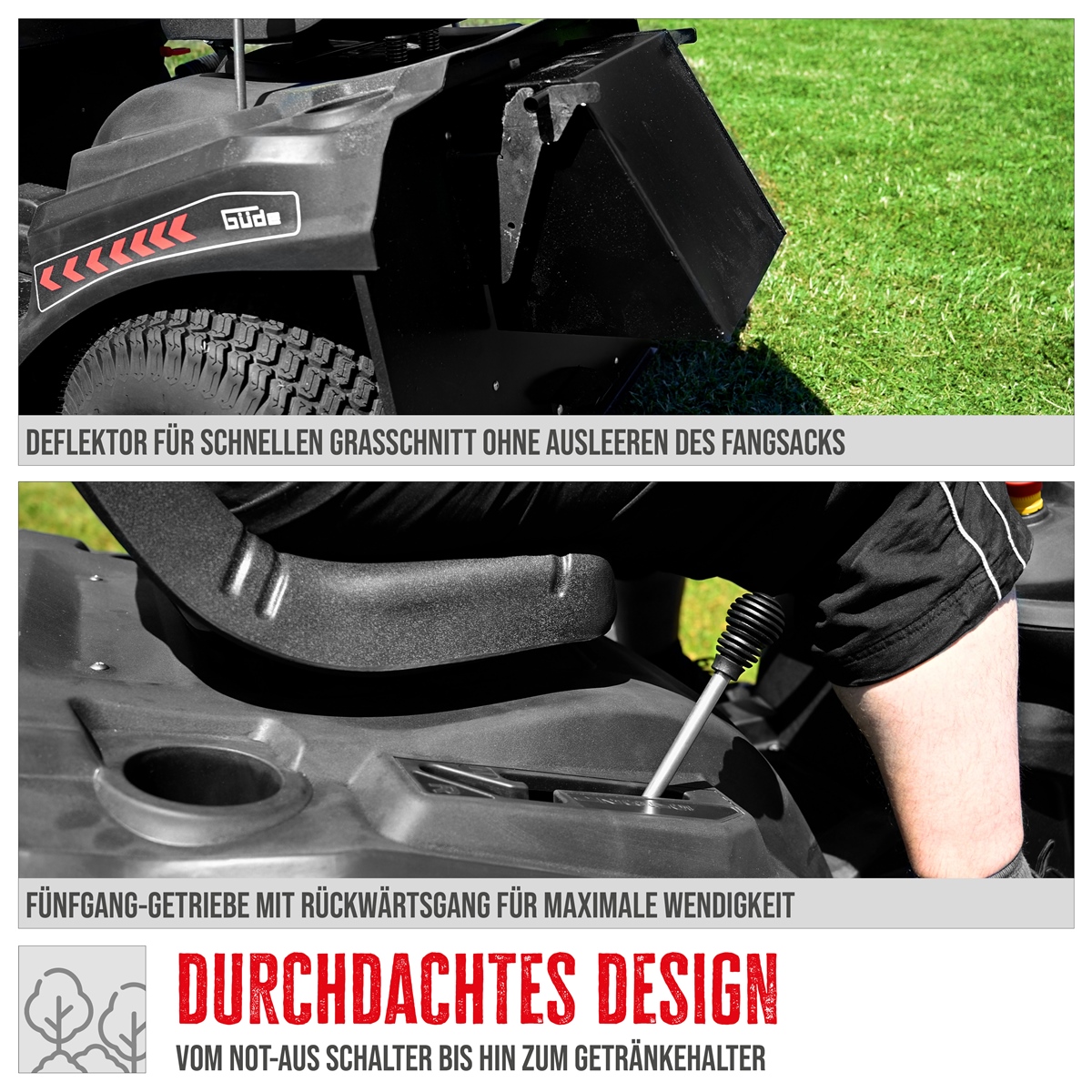 Ihr Powerpaket für richtig große Wiesen und Rasenflächen - der Güde Aufsitzrasenmäher