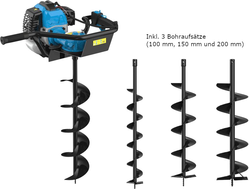 GÜDE Benzin Erdlochbohrer Erdbohrer Pfahlbohrer Erdbohrgerät GE2200 mit 3Bohrern