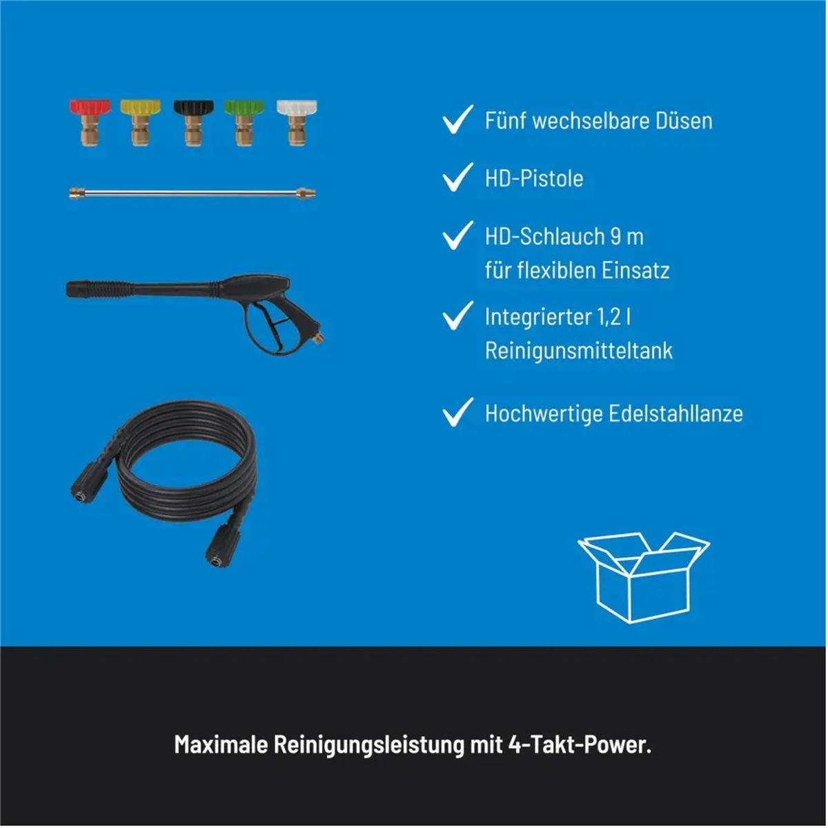- Fünf wechselbare Düsen und hochwertige Lanze