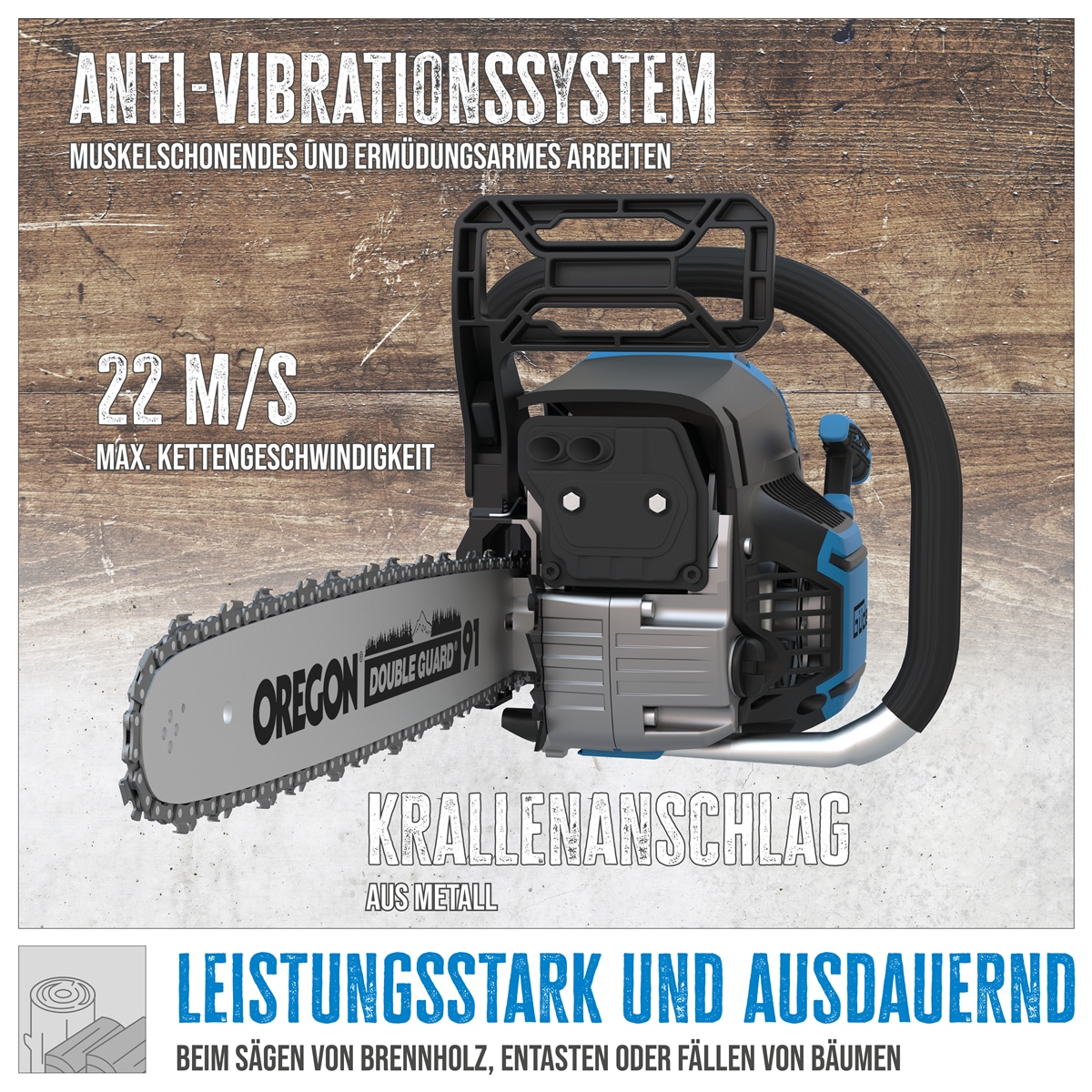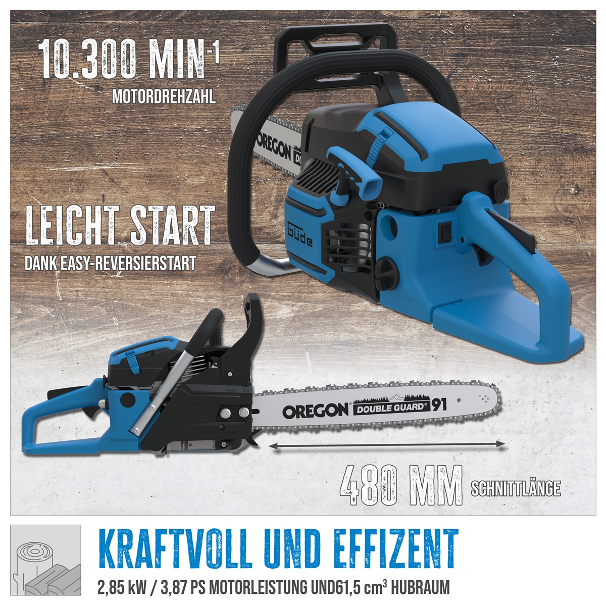 GÜDE Benzin Kettensäge KS 500-62 | 3,9 PS | 480 mm Schnittlänge | 560 mm Schwert
