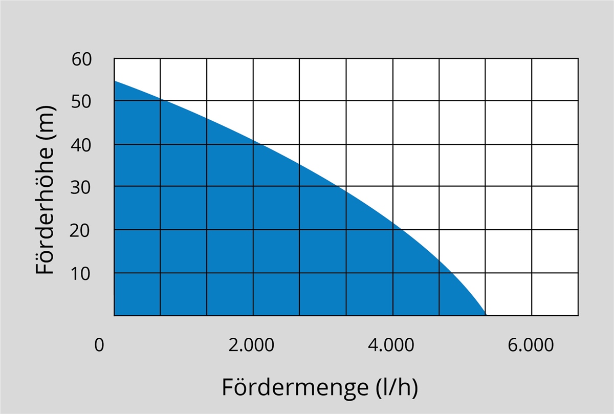 - Maximales Fördervolumen: 5400 l/h