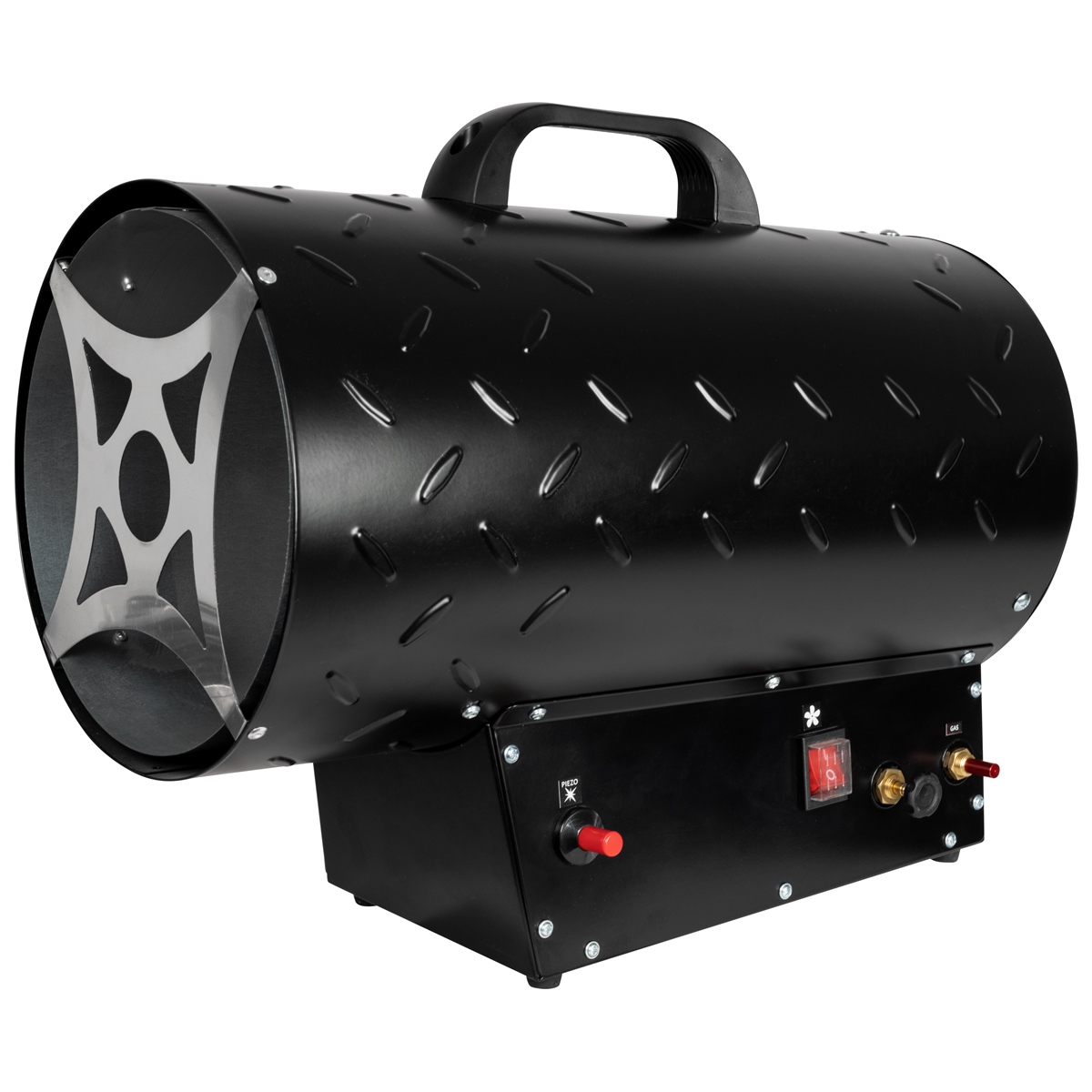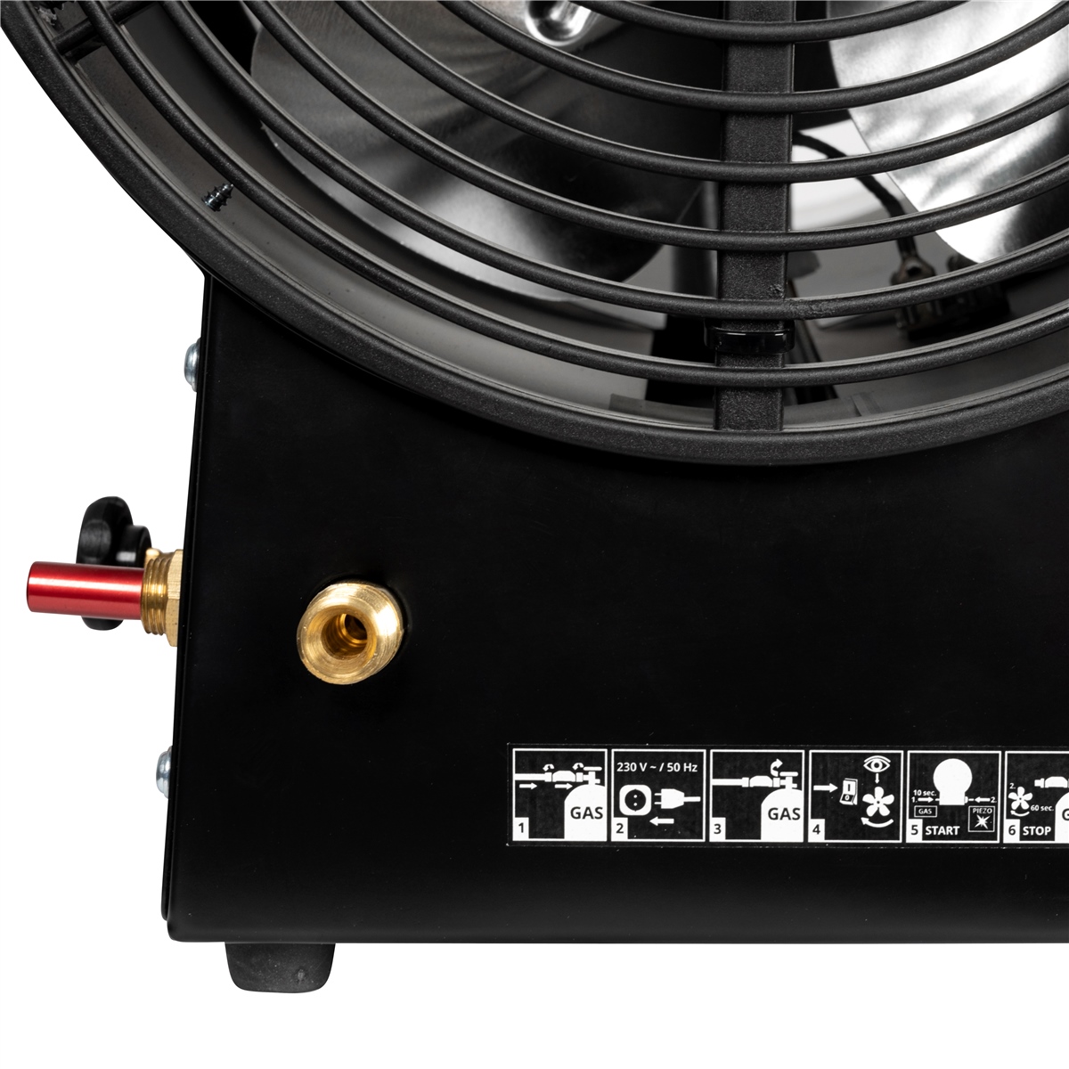 Dieses leistungsstarke Gasheizgebläse eignet sich mit seinen bis zu 30 kW perfekt dazu um gut belüftete Räume schnell und effektiv zu beheizen. Vor allem auch im Bauwesen, in der Landwirtschaft oder in Lagerräumen ist dieses Gerät eine kostengünstige Möglichkeit für die punktuelle Sofortbeheizung. Auch für überdachte Außenbereiche, Zelte und Campingeinsätze wird dieser Heizer gerne genutzt. Ein Vorheizen ist bei diesem Gerät nicht notwendig und für den sicheren und einfachen Transport sorgt ein isolierter Tragegriff. Ein Druckminderer und der 1,5 m lange Gasschlauch sind selbstverständlich im Lieferumfang enthalten. Somit wird zur Inbetriebnahme, lediglich eine Propan- bzw. Butanflasche benötigt – wobei sich das Gebläse natürlich auch ohne Gas zur reinen Ventilation verwenden lässt. Durch einen Drehregler lässt sich die Heizleistung von 18-30 kW ganz einfach stufenlos bestimmen. Das Güde Gasheizgebläse GGH 30 R überzeugt also nicht nur durch seine einfache Bedienung, sondern bei dieser hohen Heizleistung natürlich auch in Sachen Sicherheit. Verbaut wurde hierfür serienmäßig eine Piezozündung, sowie ein vor Überhitzung schützendes Sicherheitsthermostat.