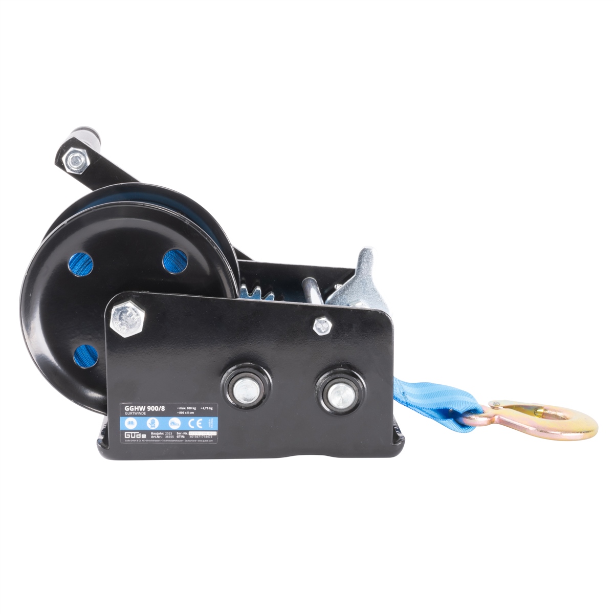 Die Güde Gurtwinde GGHW 900/8 ist ein unverzichtbares Werkzeug für das horizontale Ziehen von Lasten und durch ihren stromunabhängigen Betrieb flexibel in zahlreichen Bereichen, wie der Garage, dem Garten, auf Anhängern sowie in der Forst- und Landwirtschaft, einsetzbar. Ausgestattet mit einem 8 Meter langen Gurt und einem Lasthaken mit Tropfenöffnung garantiert sie Sicherheit bei jedem Zug. Der integrierte Sperrhebel verhindert unbeabsichtigtes Lösen, während die ergonomische Handkurbel mit Softgriff für komfortables Arbeiten sorgt. Die robuste Grundplatte mit vorgefertigten Bohrungen ermöglicht eine solide Festmontage an den gewählten Tragpunkten, wodurch die Winde sich als verlässlicher und funktionaler Partner für alle Hebe- und Zuganwendungen beweist.