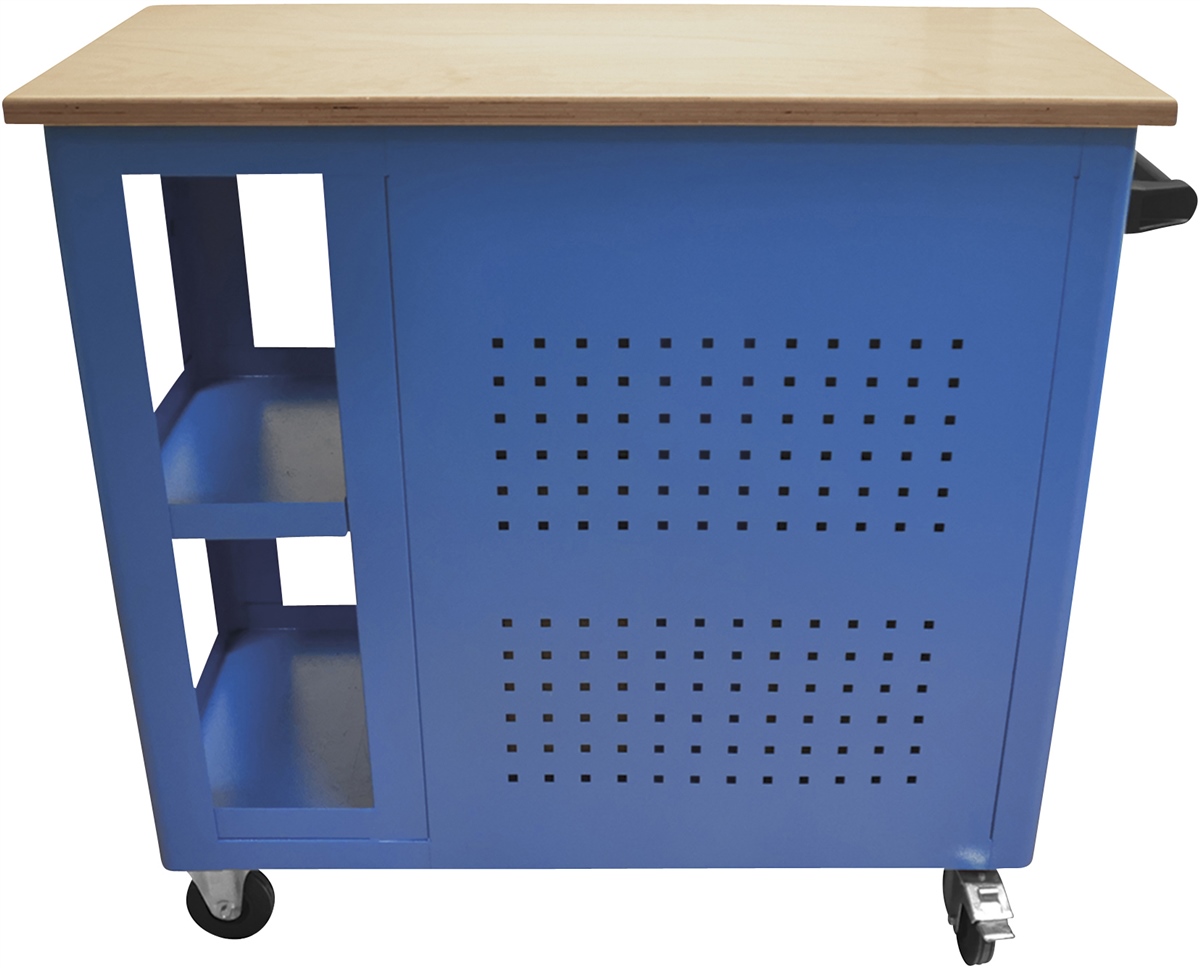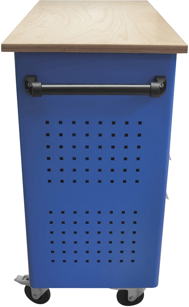 - rückseitige und Seitliche Lochwandflächen in Eurolochung (Lochung 10mm x 10 mm, Lochabstand 38 mm) und ein seitliches Anbauteil mit einem Fachboden (3-fach höhenverstellbar).