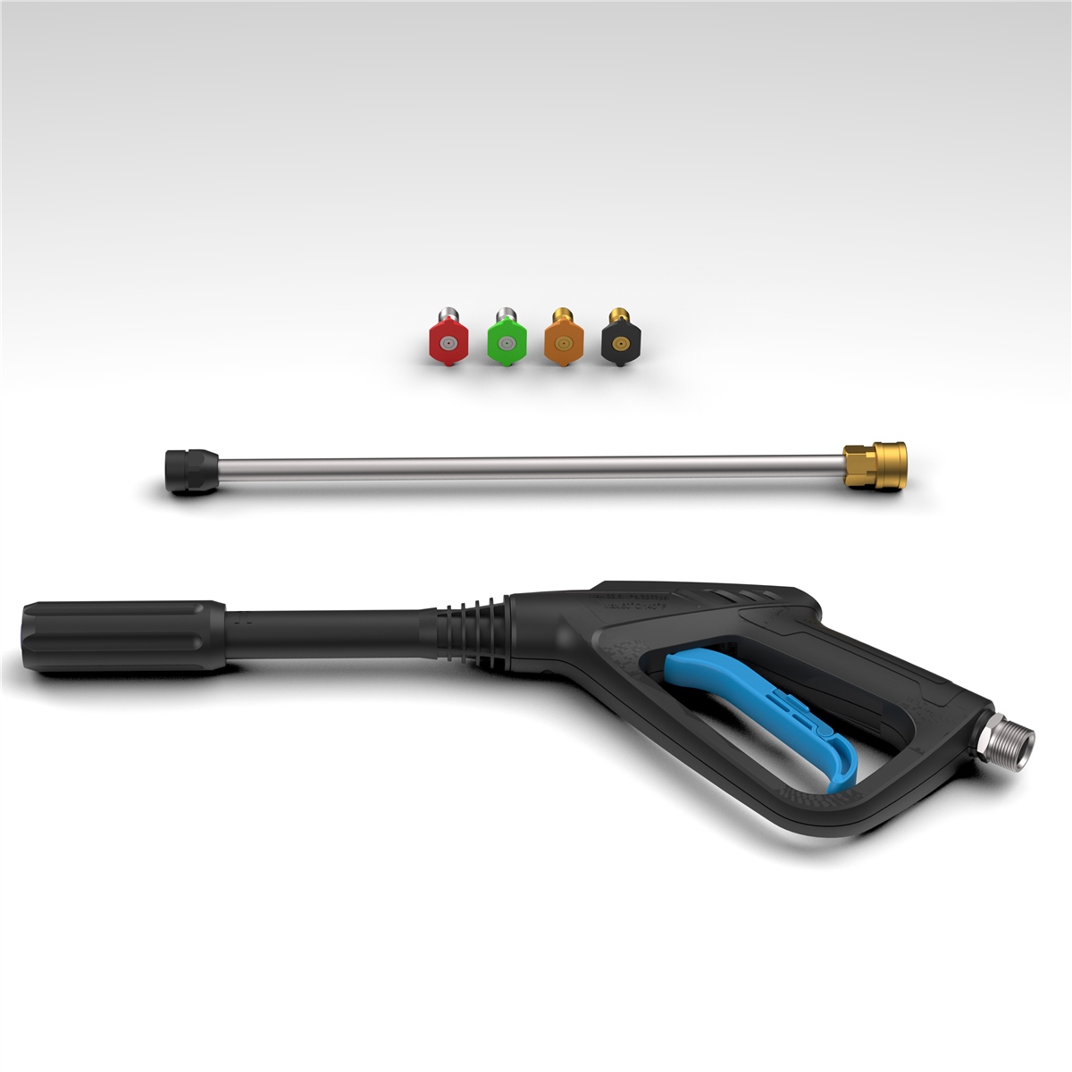 - Inklusive 6 Meter HD-Schlauch auf praktischer Schlauchtrommel, HD-Pistole mit 4 Düsen, Dreckfräslanze, Dreiecksbürste, rotierende Bürste und Flächenreiniger