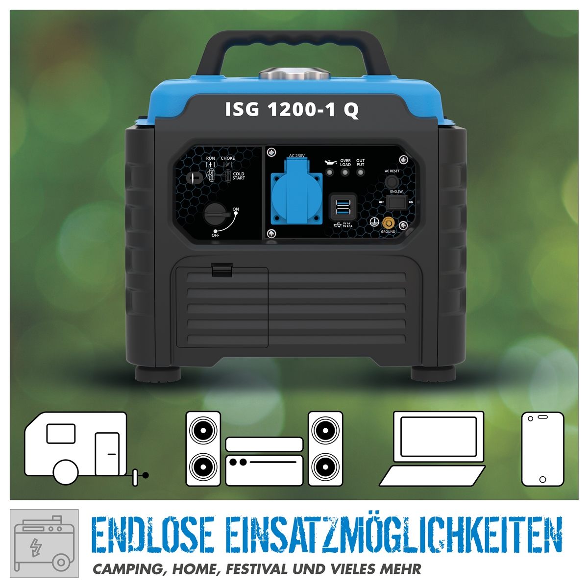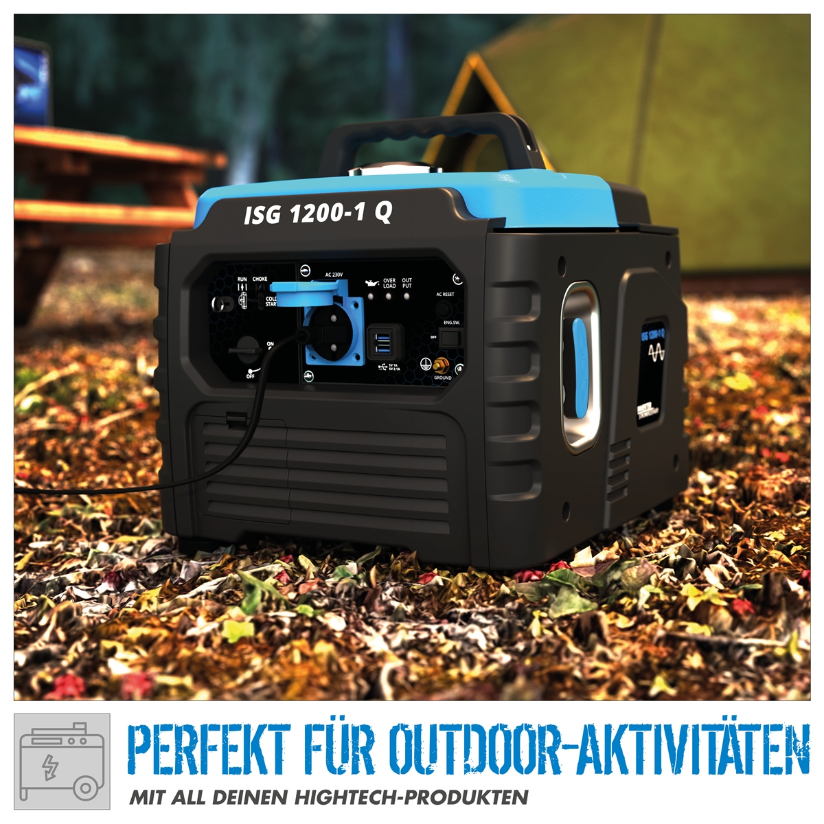 Durch die fortschrittliche Inverter-Technologie ist der ISG 1200-1 Q prädestiniert für den Betrieb von hochsensiblen elektronischen Verbrauchern, also Geräte mit verbauter Platine, wie beispielsweise Smartphones, Computern oder Ähnlichem. Das handliche Format sowie das geringe Gewicht garantieren einen einfachen Transport auf den Zeltplatz, in den Garten oder aufs Festival. Hierdurch eignet sich der Generator also perfekt für den Einsatz bei Outdoor-Aktivitäten bei denen man nicht auf seine Hightech-Produkte verzichten möchte.