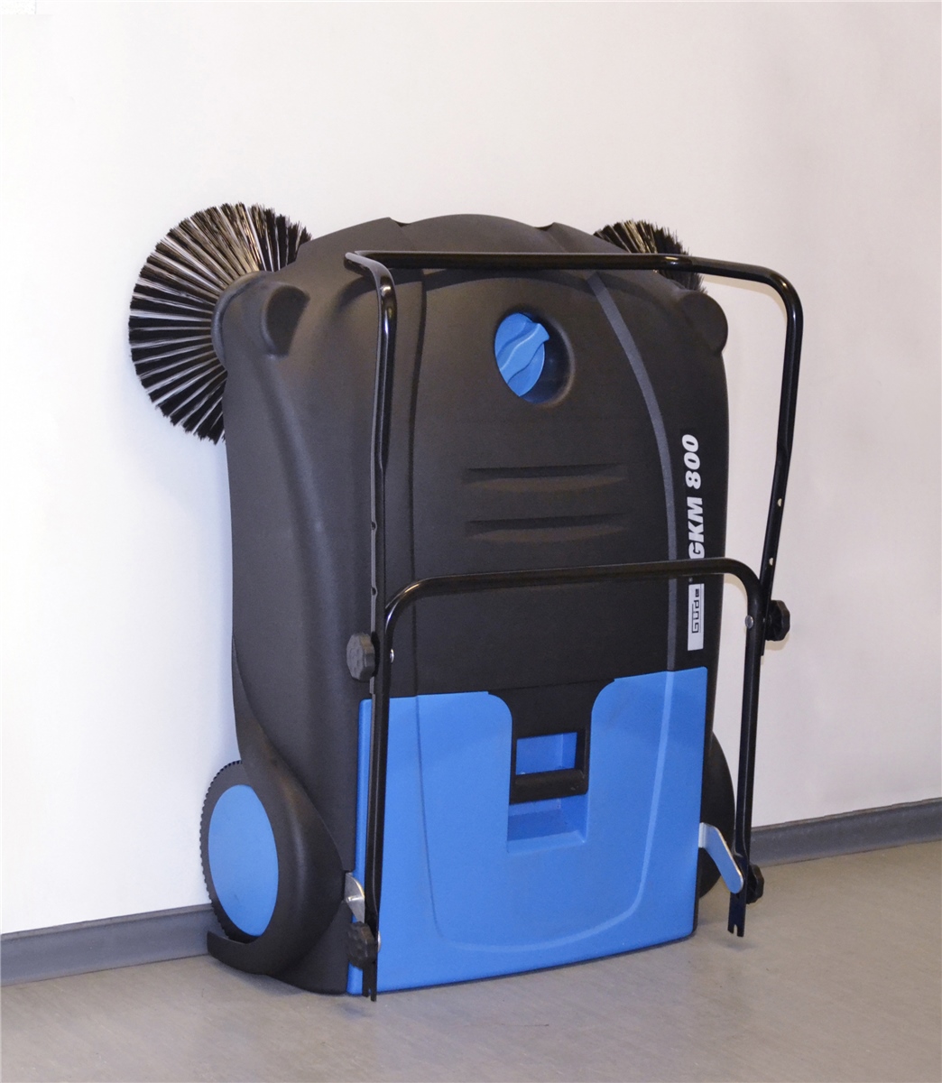 Die Güde Kehrmaschine GKM 800 ist die perfekte Lösung um Ihre Flächen rund ums Haus sauber zu halten. Indem Sie mit der Kehrmaschine vorwärts über den Schmutz fahren, kann die Kehrmaschine Laub, Dreck und Kleinteile im Auffangbehälter sammeln. Das Gehäuse besteht aus hochwertigem Kunststoff. Durch die zwei rotierenden Seitenbesen, die mit einem Gummiriemen-Antrieb betrieben werden, ist eine große Kehrbreite gewährleistet. Mit der Lenkrolle kann auch in Kurven eine einwandfreie Kehrleistung erfolgen. Die großen gummibereiften Antriebsräder sorgen für einen flexiblen Lauf des Gerätes, auch bei Nässe. Der Fahrbügel ist klappbar und nimmt daher bei der Lagerung nicht viel Platz ein.