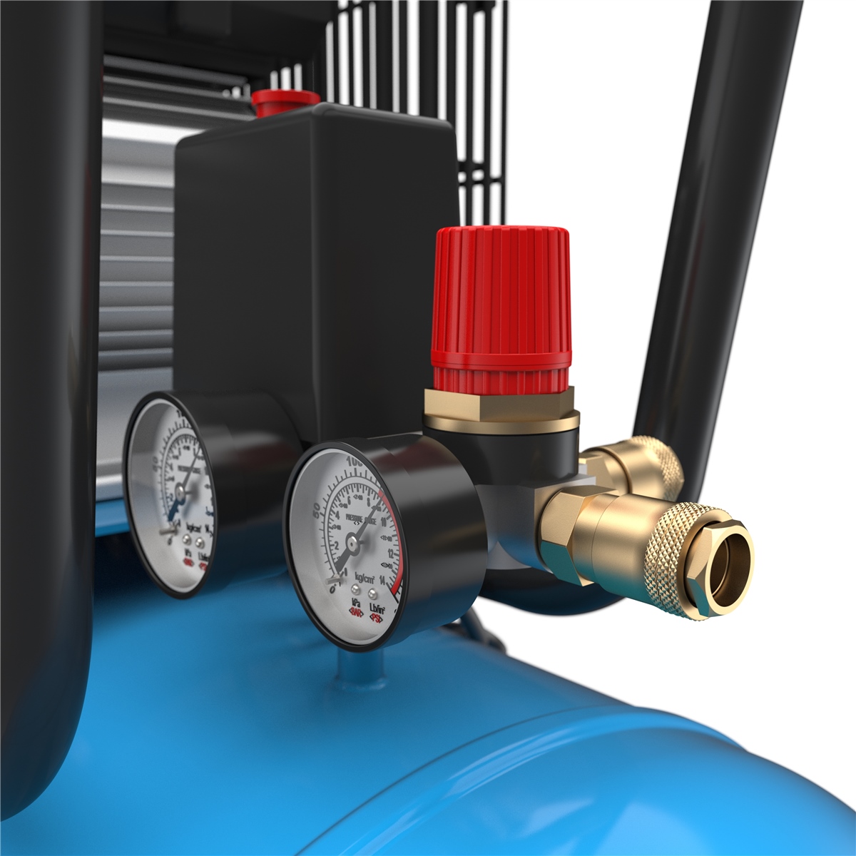 Robuster und leistungsstarker 3-Zyinder-Werkstattkompressor mit einem Maximaldruck von 10bar und einem 100ltr-Druckkessel. Der 551/10/100 zeichnet sich vor allem durch seine hohe Ansaugleistung und seinem ergiebigen 100ltr-Druckbehälter aus. Bestens geeignet auch für Werkstätten und überall da wo viel Luft bei hohem Druck gebraucht wird. Der leistungsstarke 2,2KW Elektromotor speist einen hocheffizienten, 3-Zylinder-Verdichter mit einer hohen Ansaugleistung. Der Arbeitsdruck kann bequem über den serienmäßig verbauten Druckminderer eingestellt werden und der automatische Druckschalter schaltet den Kompressor bei unterschreiten des Arbeitsruckes selbstständig wieder zu. Der 551/10/100 ist somit für auch alle anfallenden Arbeiten, wie z.B. Sandstrahlen, Lackieren sowie auch längeres Arbeiten mit Druckluftschlagschraubern, mit verhältnismäßig hohem Luftbedarf geeignet.