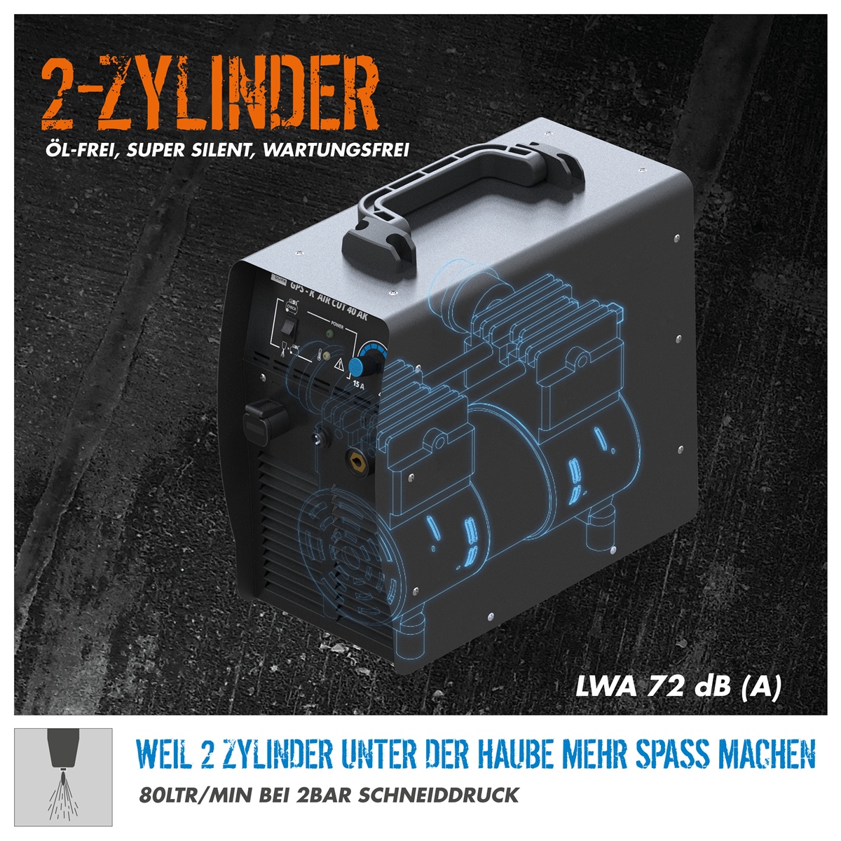- Hochfrequenz-Plasmaschneider mit integriertem Kompressor