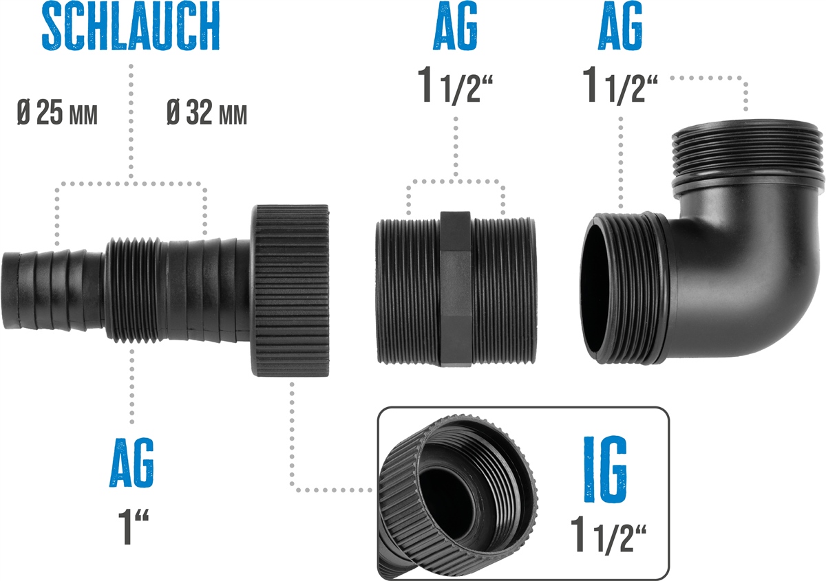 GÜDE Pumpenanschlussstutzen 1 1/2 AG 25/32 mm Schlauch mit Winkelstück