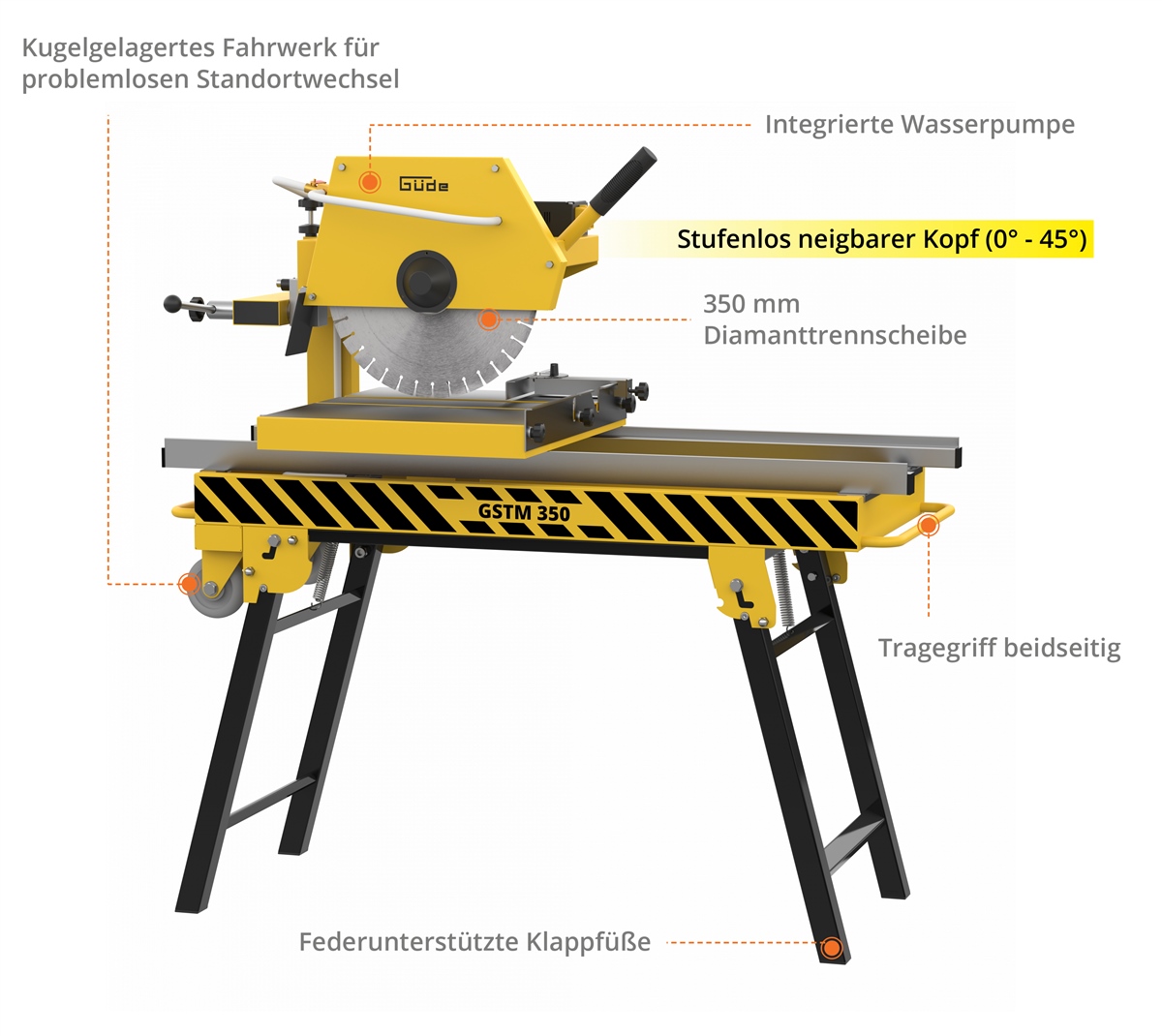 GÜDE Radial Steintrennmaschine Steintrenner Nassschneider GSTM 350 230V 2200W