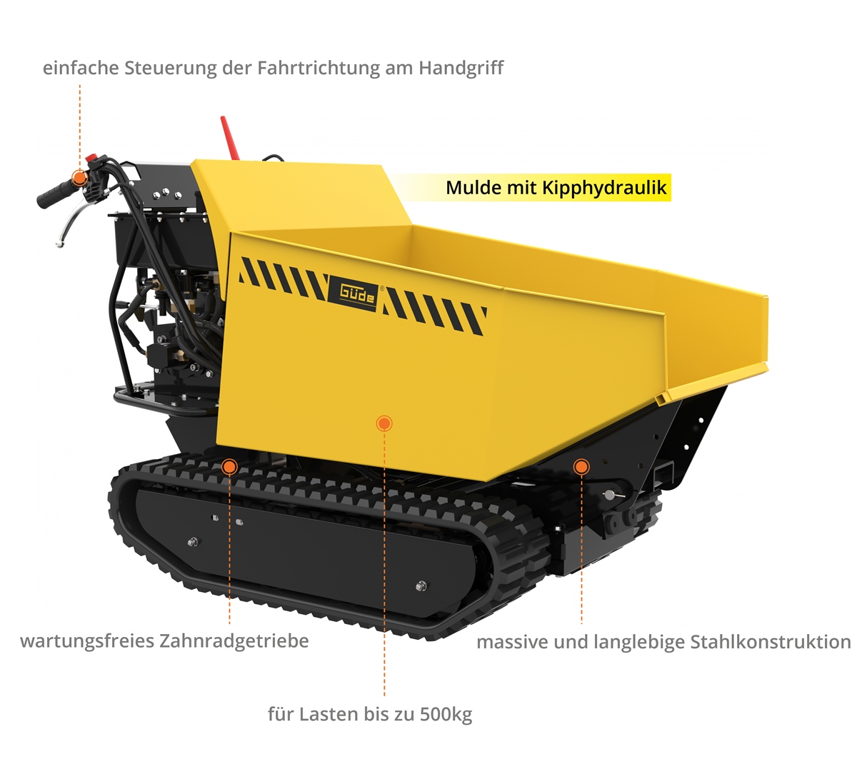 GÜDE Raupendumper GRD 500/R Minidumper 230L 500 kg 5,6 PS Benzin Zahnradgetriebe