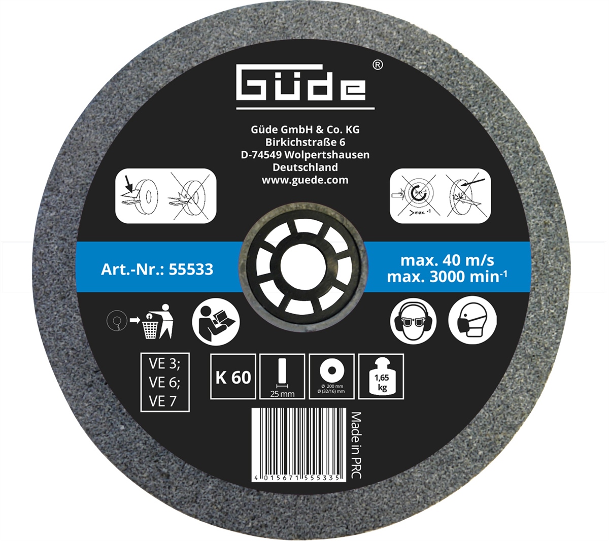 GÜDE Schleifscheibe Ersatzscheibe 200x25x32mm K60 für Doppelschleifer GDS 200-35