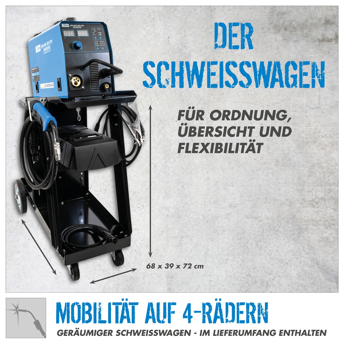 - inkl. Schweißwagen (für Gasflaschen)