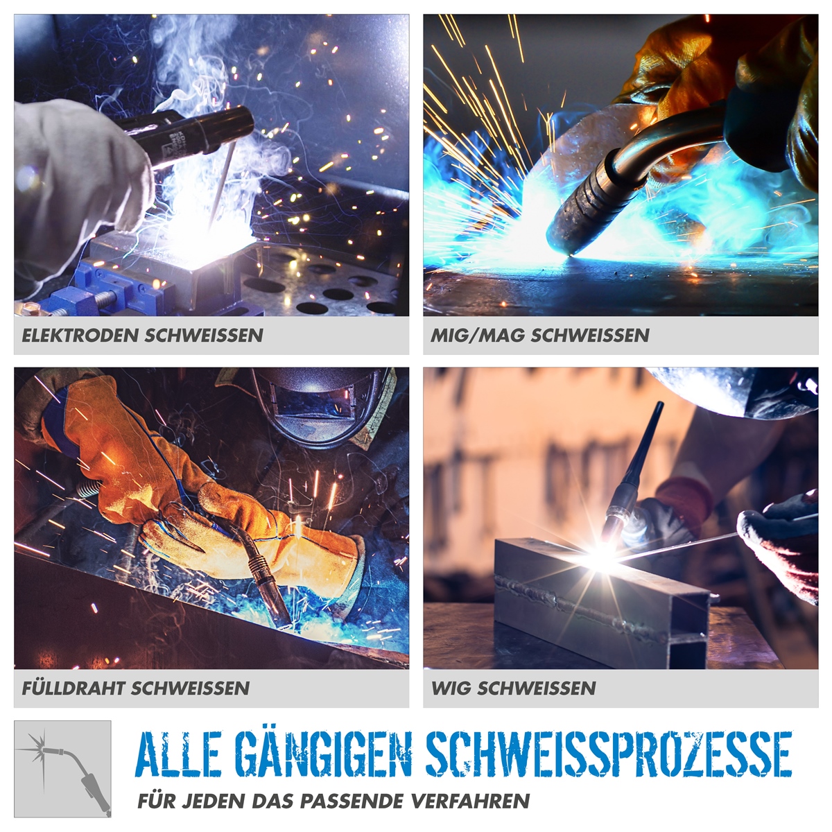 - inkl. Schweißschild & Schlackenhammer mit Bürste