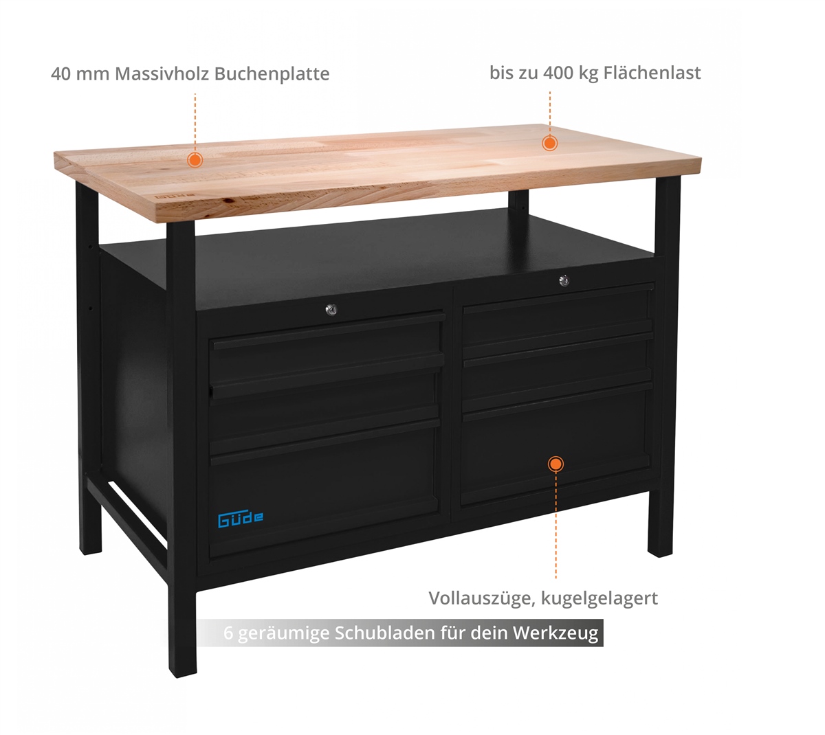 Güde Werkbank P 1200 SS Black Line 1190 x 650 x 850 mm Robuste Profi-Qualität