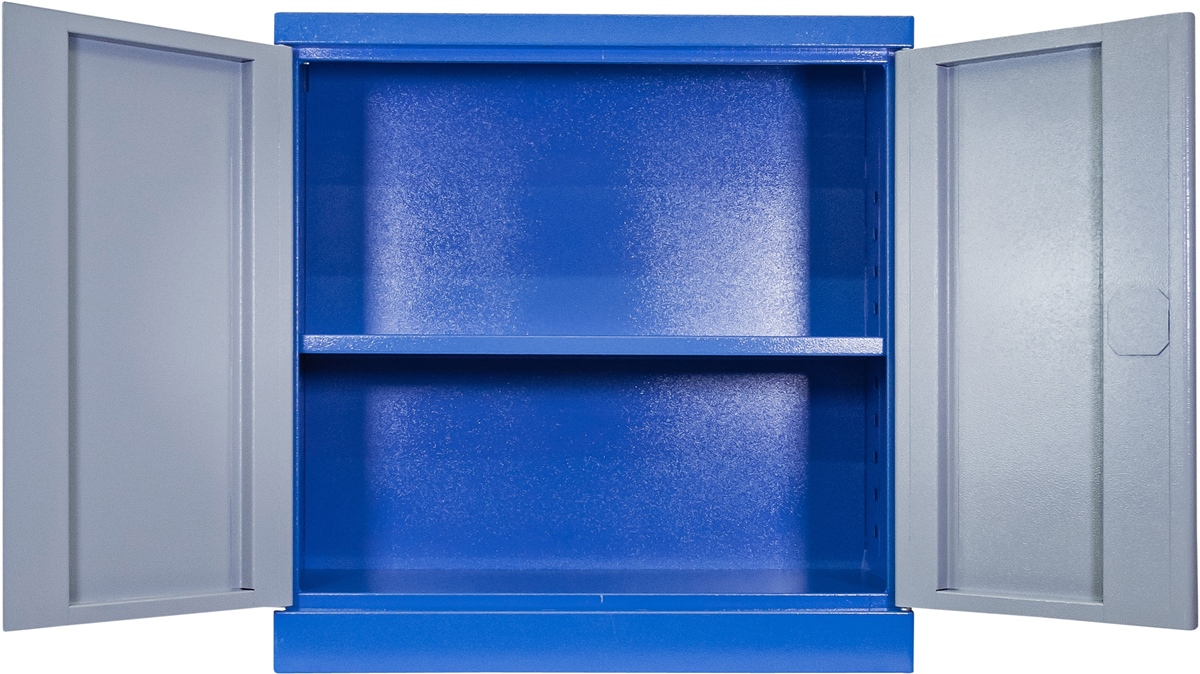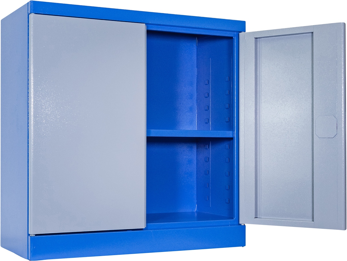 - pulverbeschichtet: RAL 5015 (Korpus) und RAL 7001 (Tür)