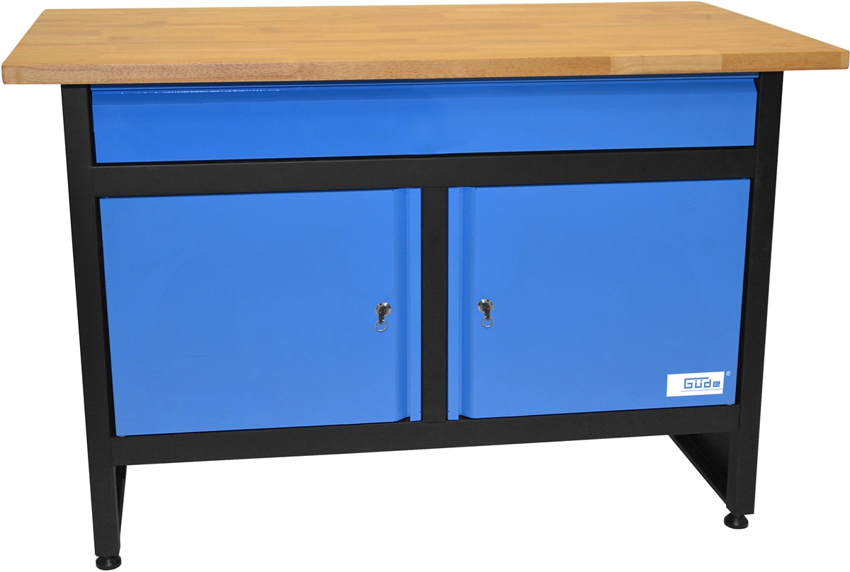 Diese Werkbank ist Teil der Güde Eco Line – eine Werkbank-Serie, die durch ihre stabile Konstruktion, eine einfache Montage und diverse Ausführungen besticht. In Bezug auf Größe und Ausstattung mit Türen und Schubladen gibt es unterschiedlichste Varianten – womit jeder das für seine Anforderung passende Modell findet. Auch die individuelle Ausrichtung ist bei der Eco Line kein Problem, denn höhenverstellbare Füße bieten eine einfache Möglichkeit zur Feinjustierung. Die besonders robuste Arbeitsplatte ist aus Gummibaum-Holz gefertigt und somit 50% härter als beispielsweise eine Eichenholz-Platte. Nicht missen möchte man außerdem den Vollauszug der Schubladen, welche je mit bis zu 30 kg belastbar sind und auf kugelgelagerten Führungsschienen laufen. Die maximale Belastung der Werkbänke beträgt 300 kg, des Weiteren sind die verbauten Türen abschließbar und werden inklusive Ersatzschlüssel geliefert.