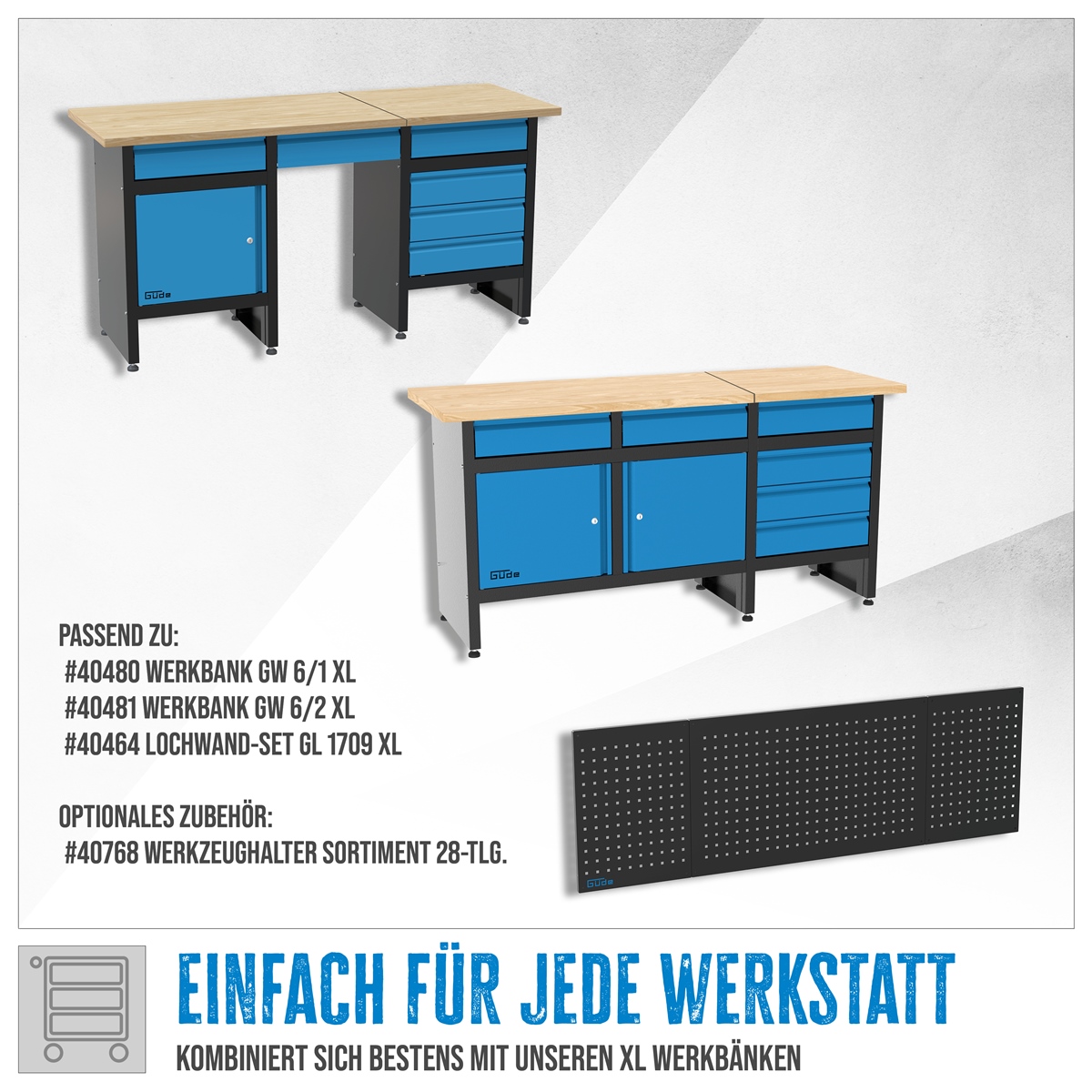 Dieser 2-türige Hängeschrank mit praktisch integrierter Lochwand ist die perfekte Ergänzung zur Güde Eco Line, mit der nun auch die Wandfläche über unseren beiden XL Werkbänken optimal genutzt werden kann.