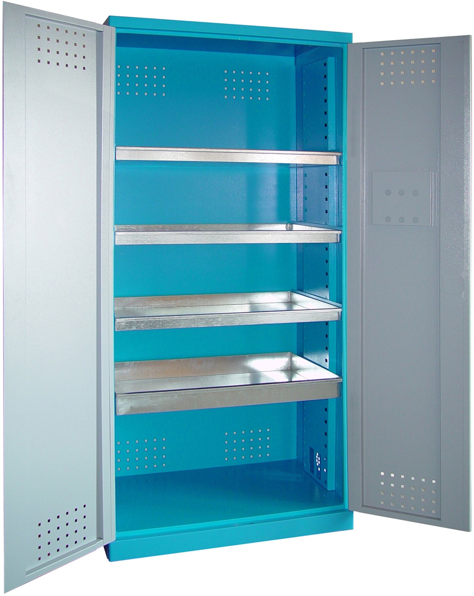 Stabiler Schrank in pulverbeschichteter Ganzstahlausführung zur fachgerechten und sicheren Aufbewahrung