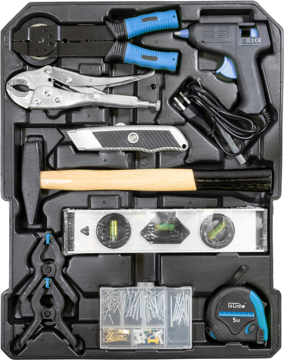 - 4 Zangen (Seitenschneider, Spitzzange, Kombizange, Wasserpumpenzange)
