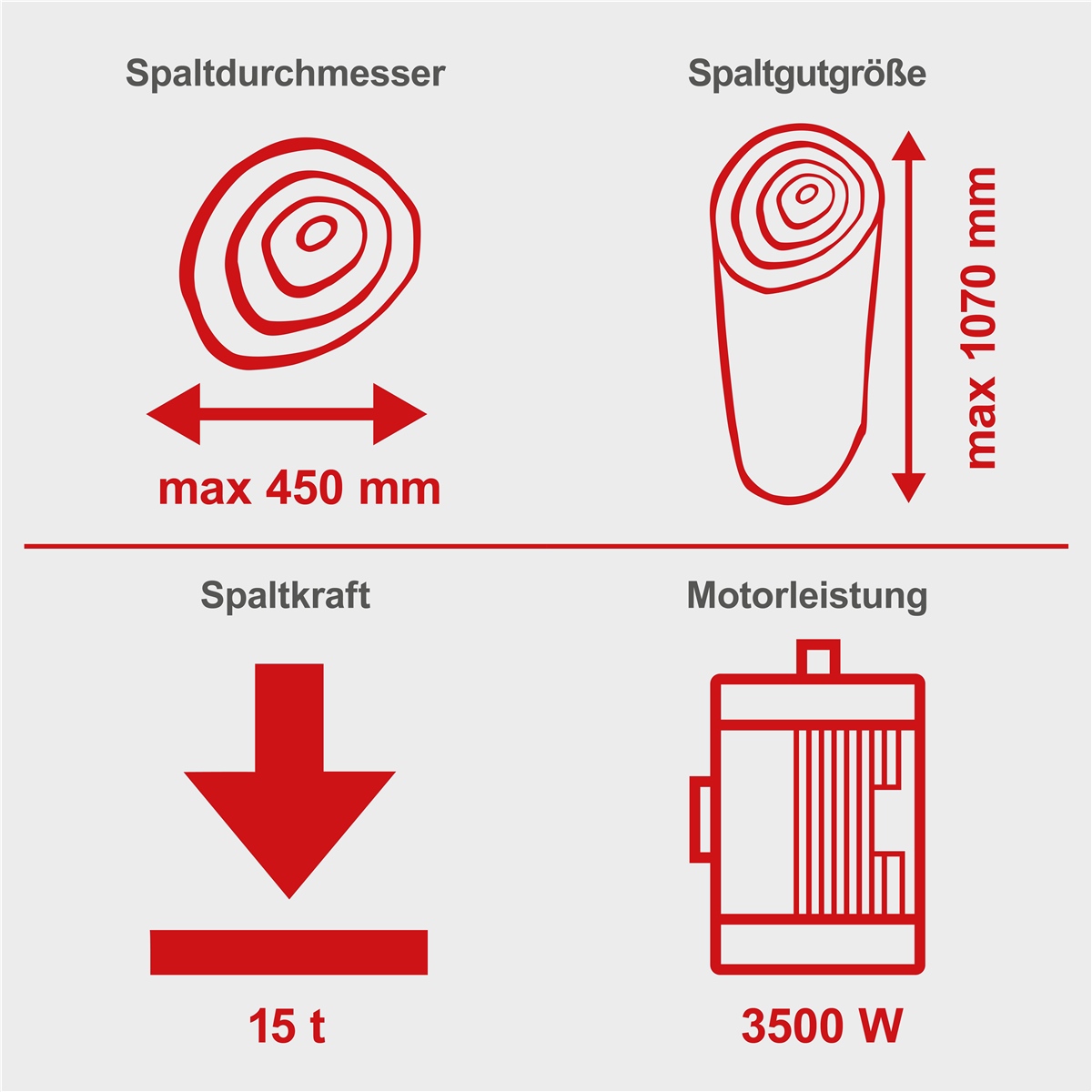 - Spaltet Hart- und Weichholz bis 1070 mm Länge mühelos und zuverlässig