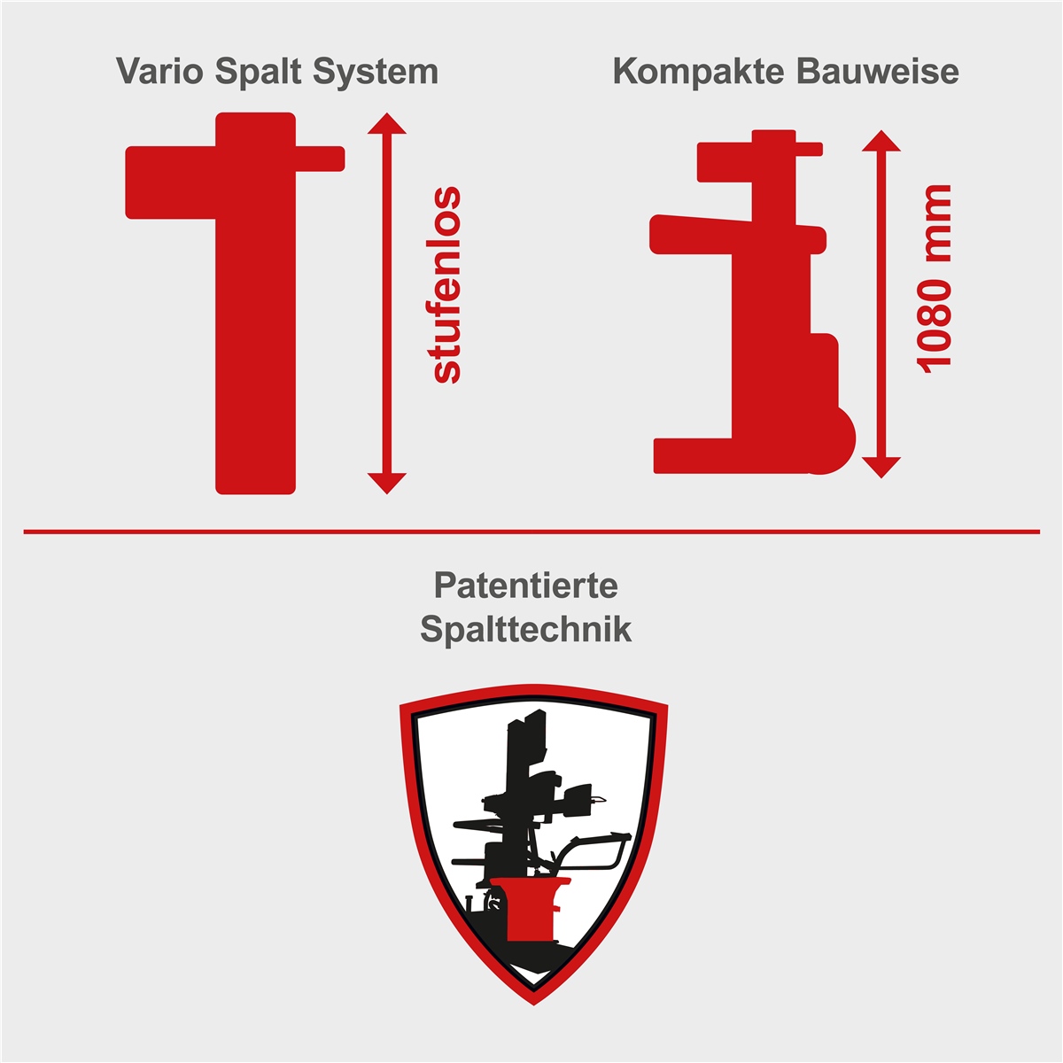 - Patentierte Spalttechnik – Spaltgut kann in verschiedenen Arbeitshöhen gespalten kann