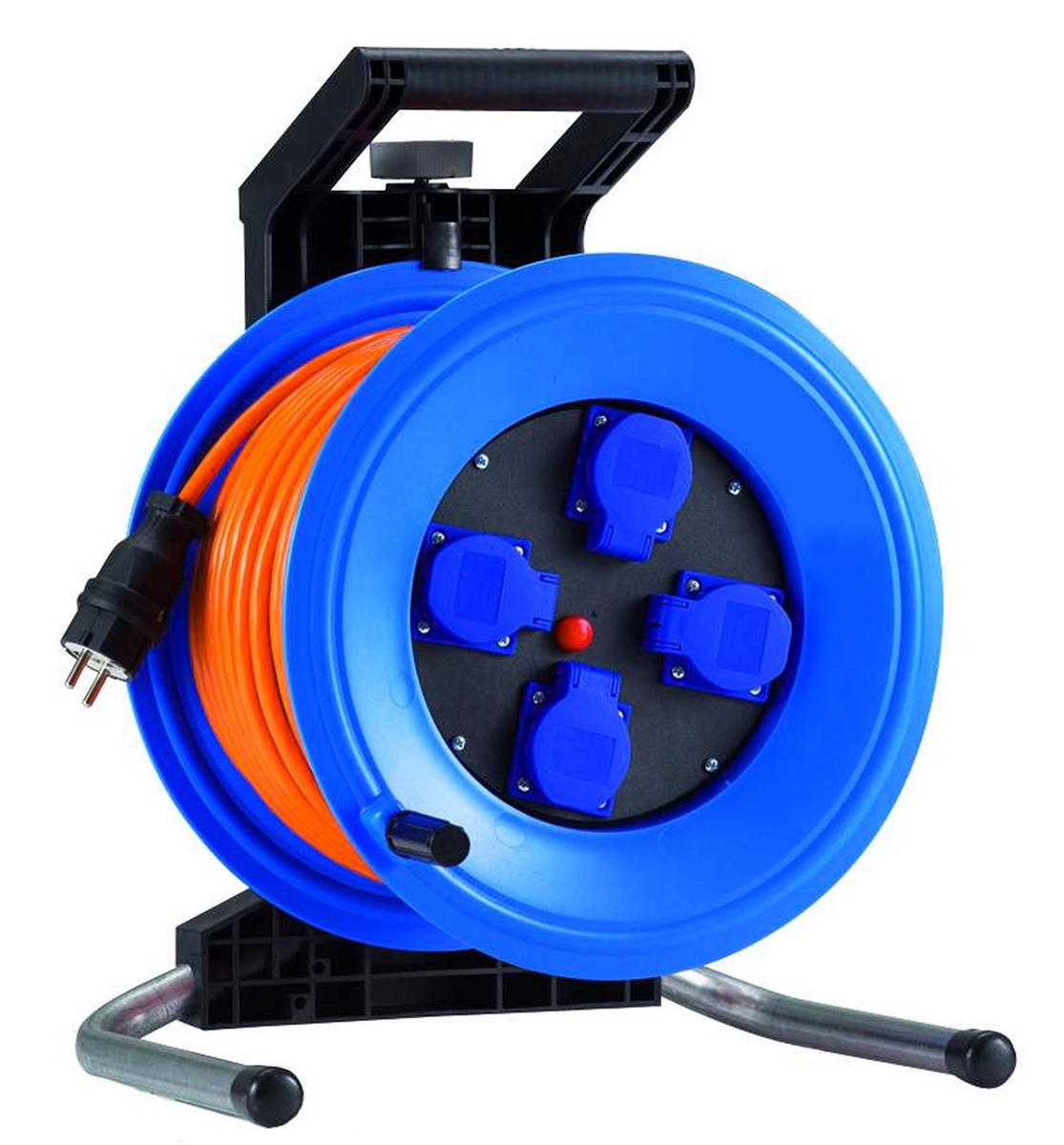 Kunststoff-Kabeltrommel Professional Plus 320, 40 m HEDI Panzerkabel Plus H07BQ-F 3G1,5, 4 einzelne Schuko-Steckdosen, Thermoschutzschalter. Für den ständigen Einsatz im Freien.Technische Daten: