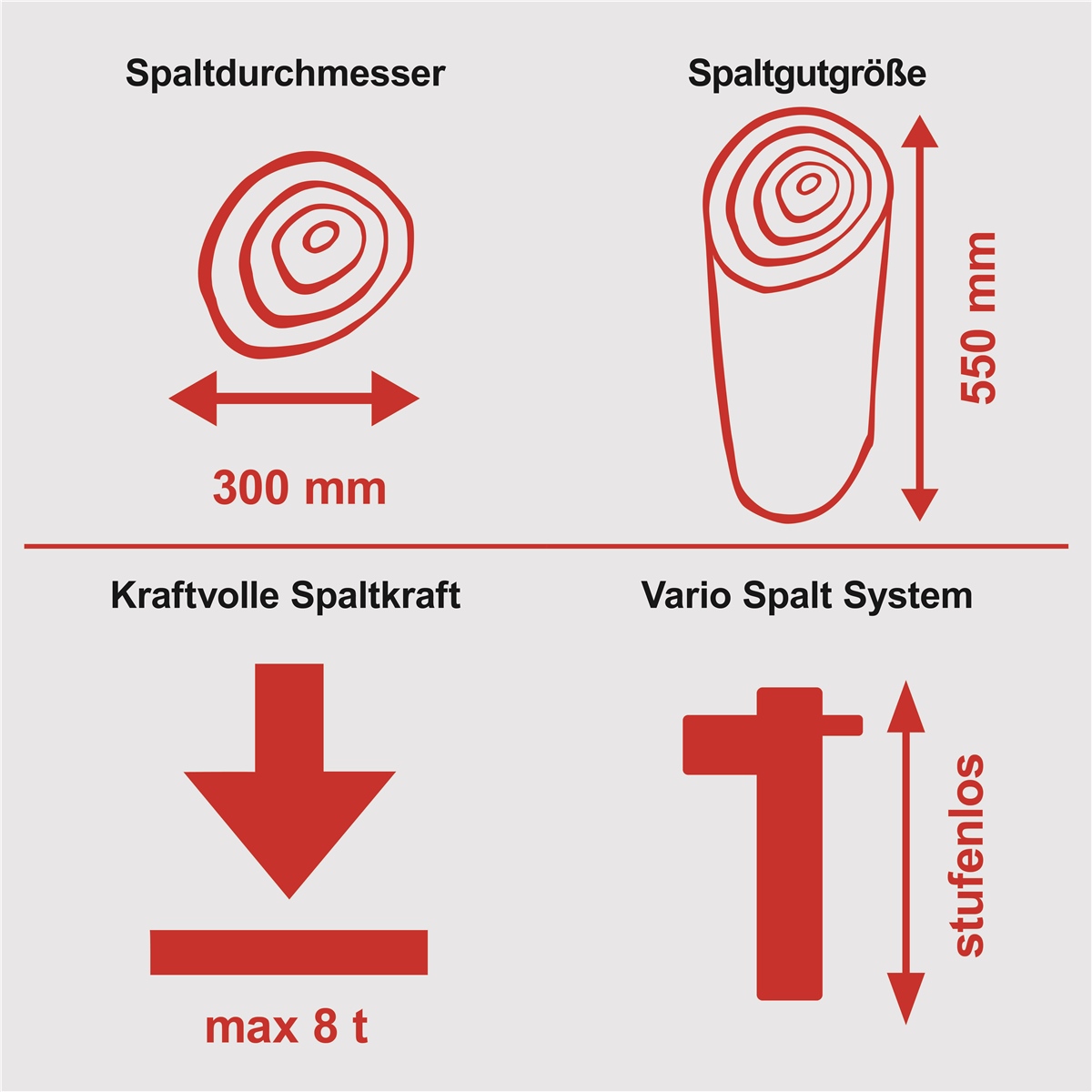 - Maximaler Spaltgutdurchmesser: 300 mm