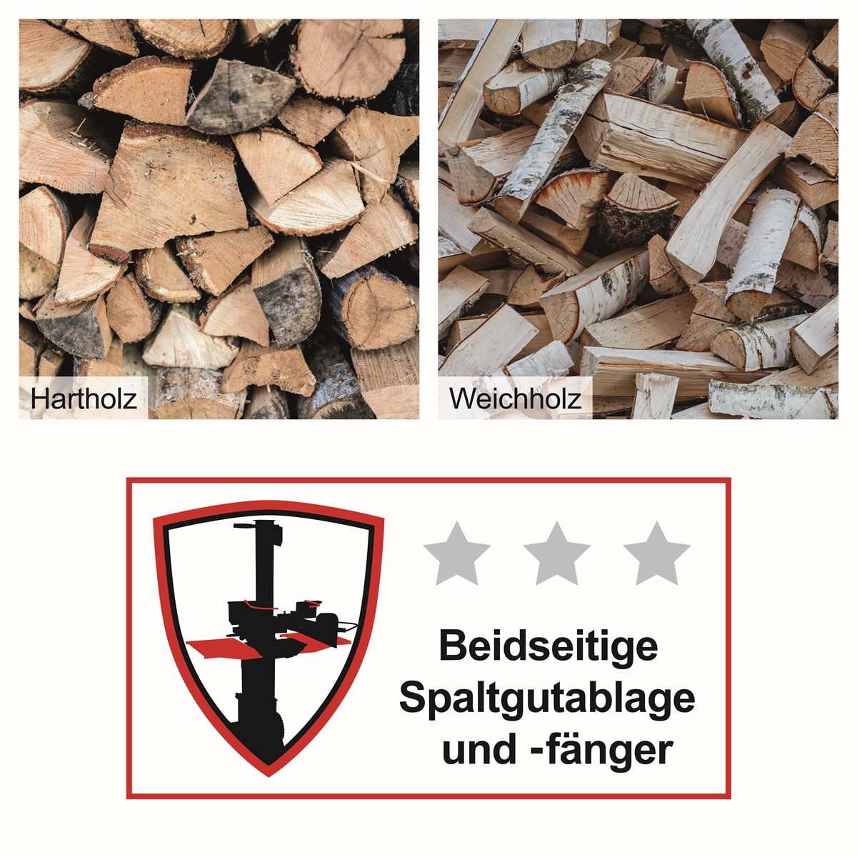 die schwerste Arbeit beim Holzspalten abnimmt. Durch die Transporträder ist der