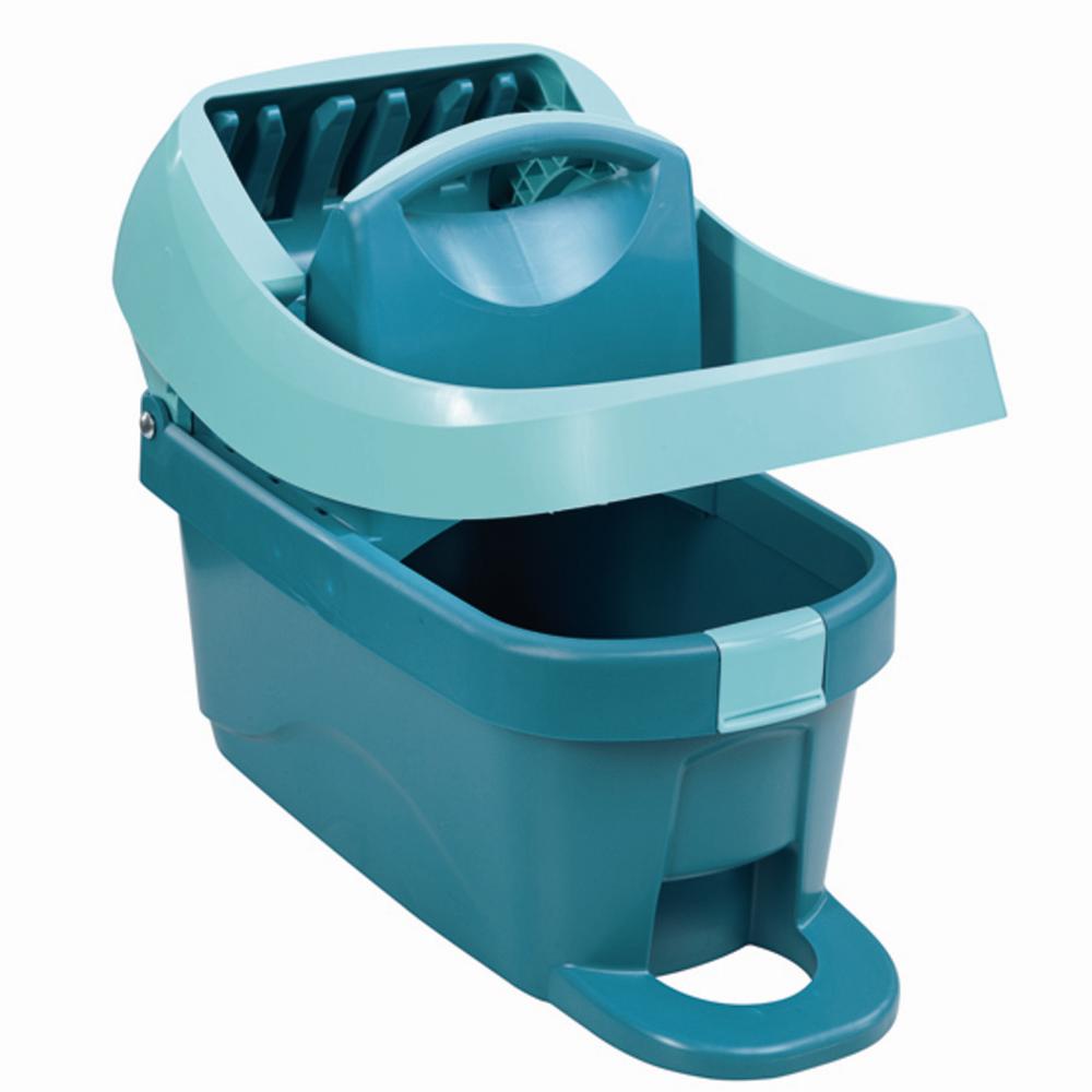 Die Leifheit Wischtuchpresse nimmt Ihnen viel Arbeit beim Reinigen der Fußböden ab. Speziell bei großen Flächen muss das Wischtuch oft ausgepresst werden. Die Presse auf dem Rollen Putzeimer übernimmt dies für Sie. Dazu lösen Sie das Wischtuch mit einem Fußklick auf einer Seite von der Halterung des Bodenwischers. Das am Wischer baumelnde Wischtuch geben Sie in die Presse auf dem Putzeimer. Ein Fußtritt auf den Griff des Putzeimers reicht und die Wischtuchpresse