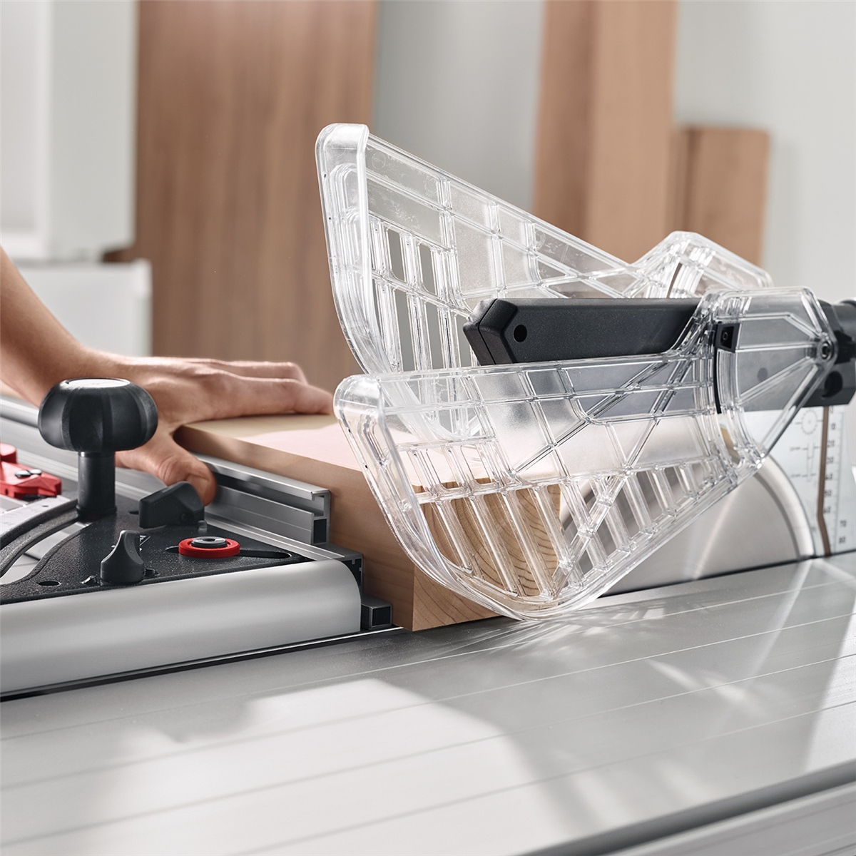 - ARBEITSLICHT UND SCHUTZHAUBE - Das sensorgesteuerte Arbeitslicht sorgt für beste Sicht auf den Schnitt. Die teilweise transparente Schutzhaube deckt das Sägeblatt komplett ab und sorgt damit für mehr Sicherheit.