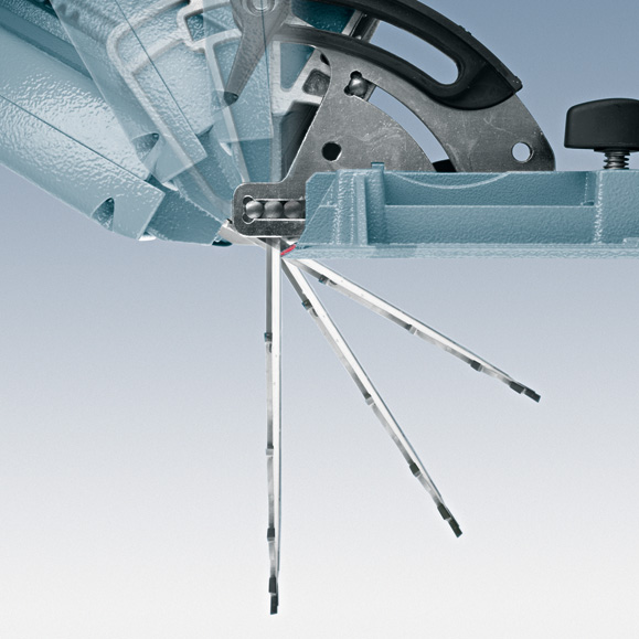 - SCHWENKSYSTEM - Mit neuem Schwenksystem für mehr Schnitttiefe. Bei einer Winkeleinstellung von 45° ist eine einmalige maximale Schnitttiefe von 131 mm und bei 60° von immer noch enormen 93 mm möglich.