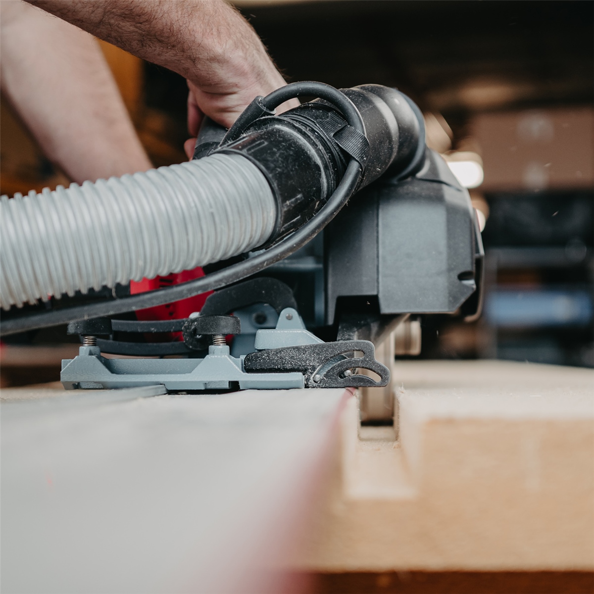 - LÄNGSNUT - Mit dem im Sonderzubehör erhältlichen Verstellnuter können Nuten zum Beispiel für Versorgungsleitungen effektiv und schnell eingefräst werden.