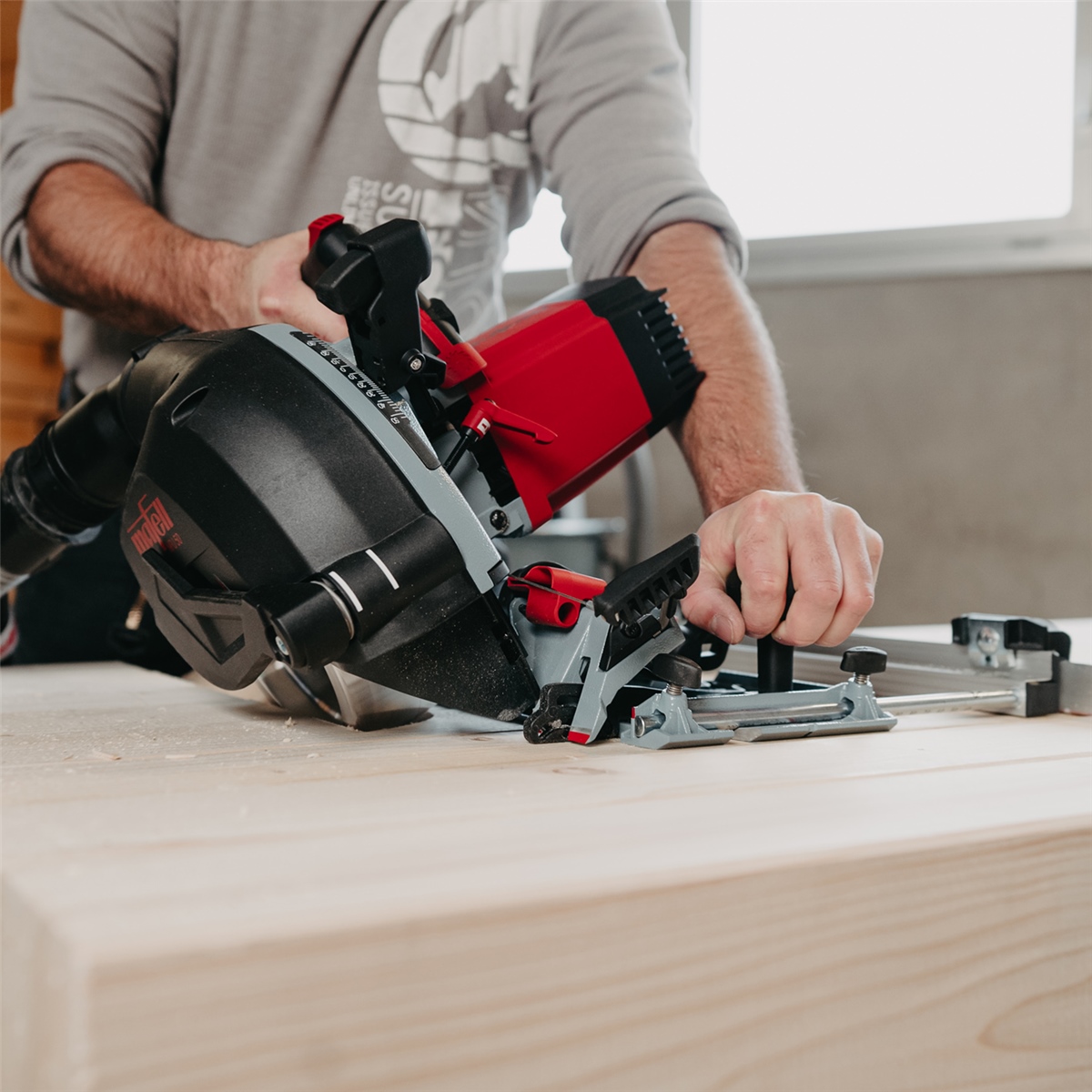 - SCHIENENENTRIEGELUNG - Mit einem einzigen Knopfdruck lässt sich die NFU von der Kappschiene lösen und freihand oder auf der Führungsschiene verwenden.