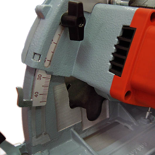 - ENDANSCHLAG - Der verstellbare Endanschlag verhindert ein Überschreiten der gewünschten Schnittlänge und lässt das Sägeblatt am Schnittende aus dem Material austauchen.