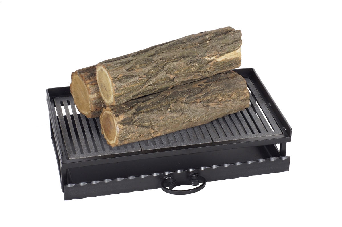 Dieser in Handarbeit gefertigte Kaminrost sorgt für eine bessere Sauerstoffzufuhr beim Abbrennen des Feuerholzes z. B. im offenen Kamin.