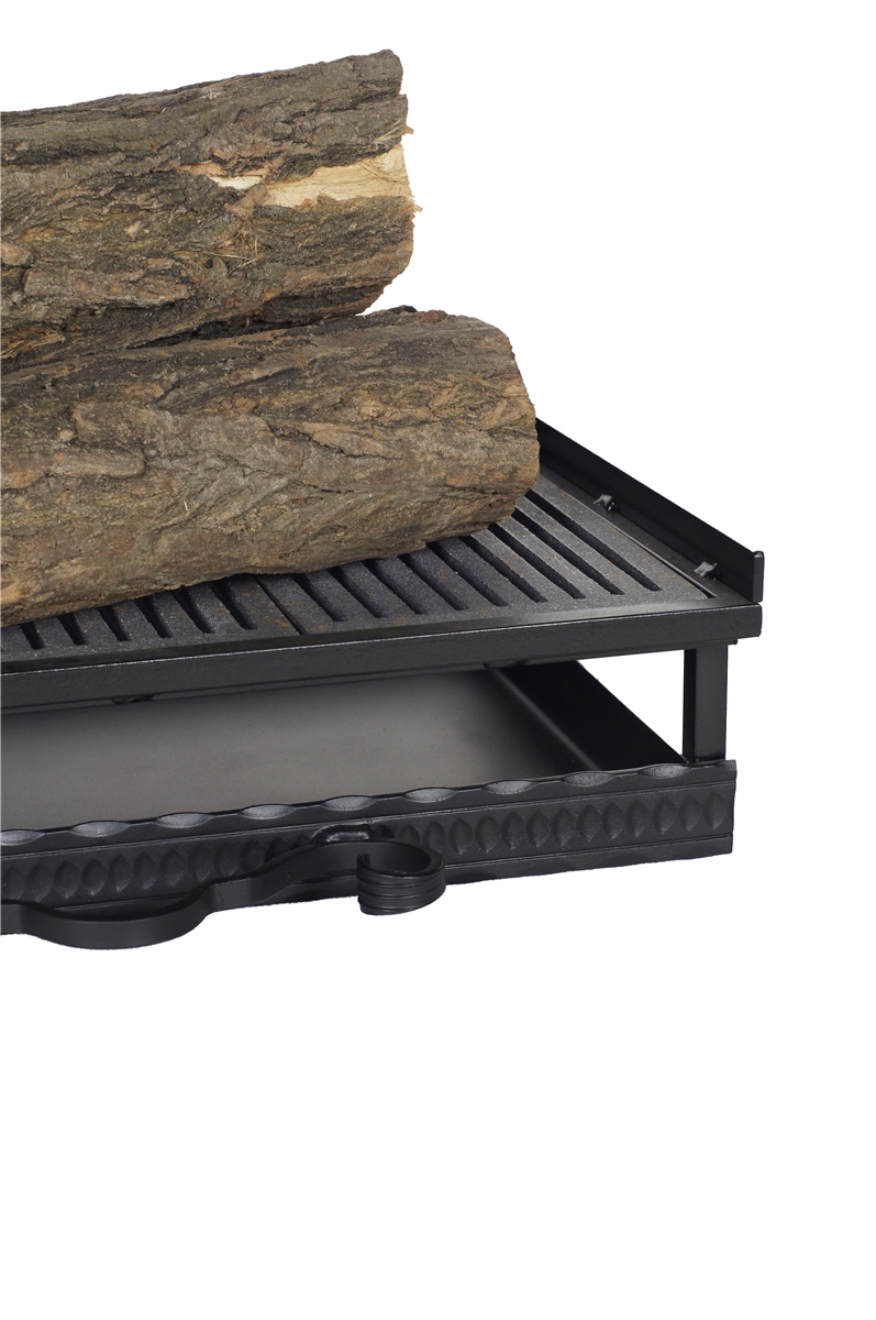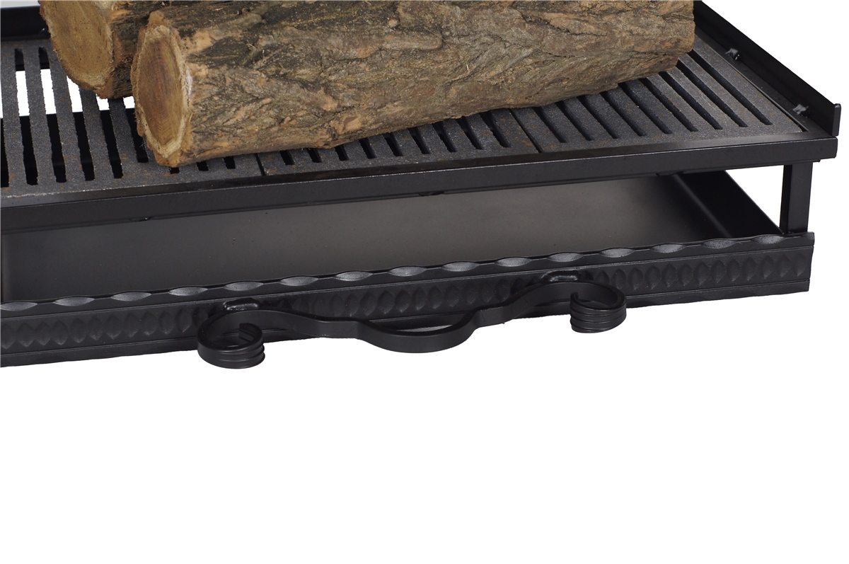 Dieser in Handarbeit gefertigte Kaminrost sorgt für eine bessere Sauerstoffzufuhr beim Abbrennen des Feuerholzes z. B. im offenen Kamin.