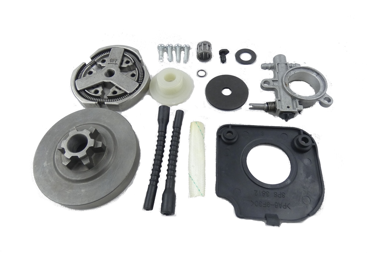 MATRIX Ersatzteil Kupplung Ölpumpe Set für Benzin Kettensäge Motorsäge MCS 38-36