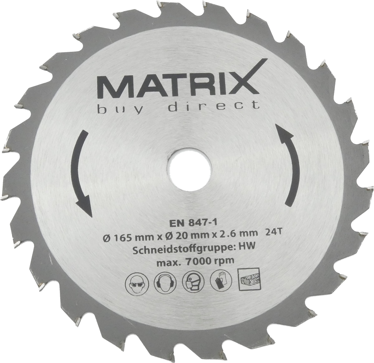 MATRIX Sägeblatt Ersatzsägeblatt 165 mm 24 Zähne für Tauchsäge TRS 1200-56