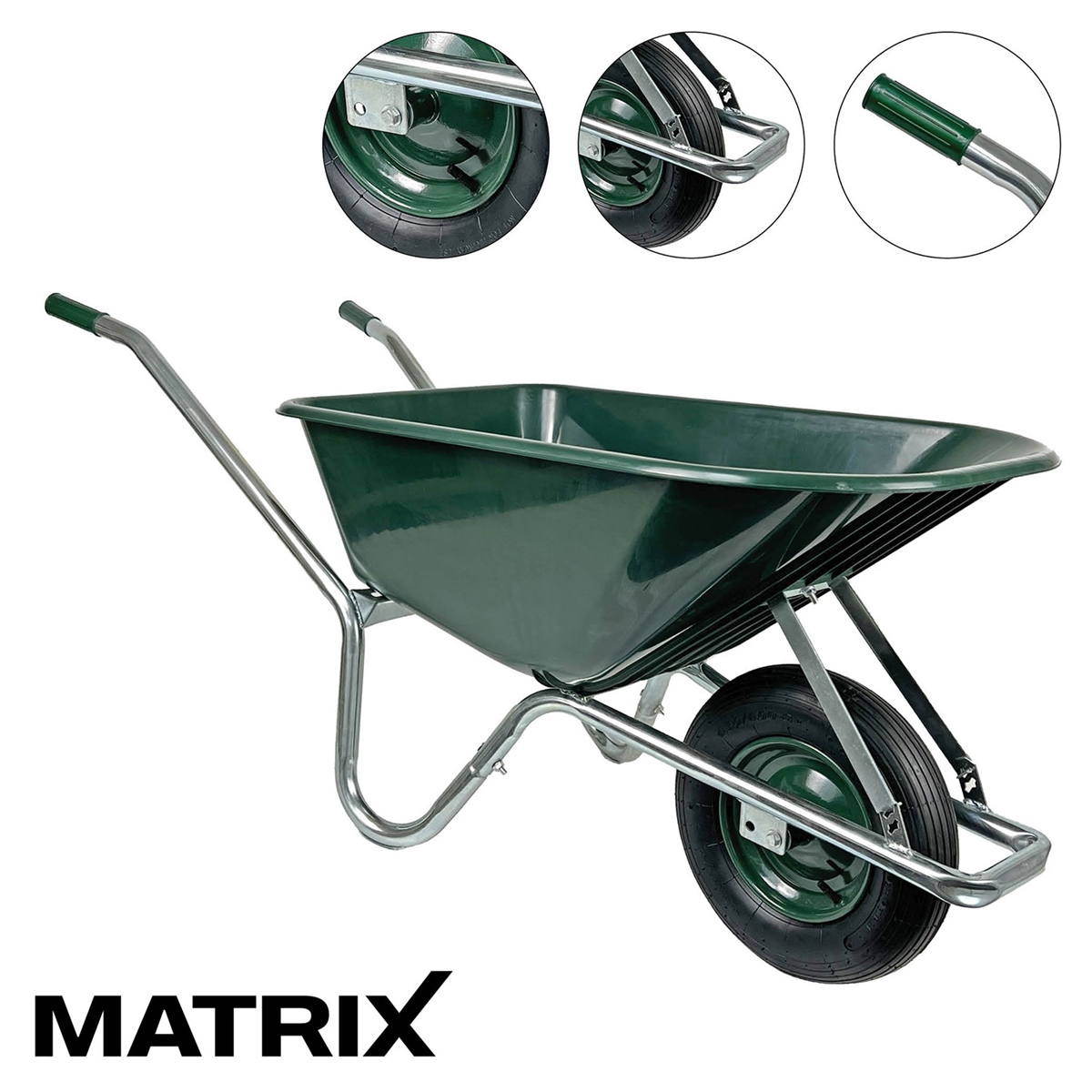 Matrix Schubkarre 100l 250kg Luftrad Kunststoffwanne grün Rahmen verzinkt